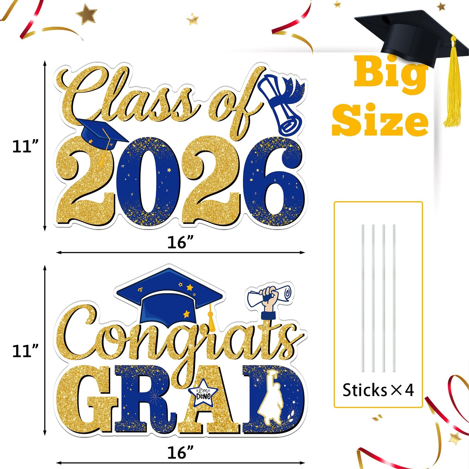 2026 Graduation Decorations, 2PCS Yard Signs Class of Blue Gold