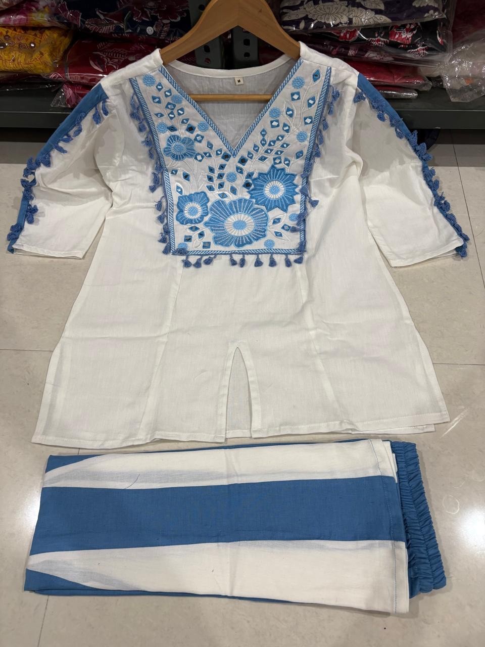 как выглядит EMBROIDERED COTTON CO-ORD SET WOMEN PAKISTANI SUIT SALWAR KAMEEZ BOHO 2PC OUTFIT фото