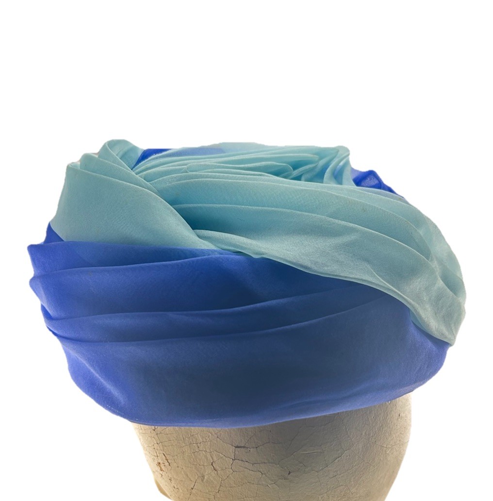 Vtg 60s Herbert Bernard Two Tone Blue Chiffon Turban Style Hat