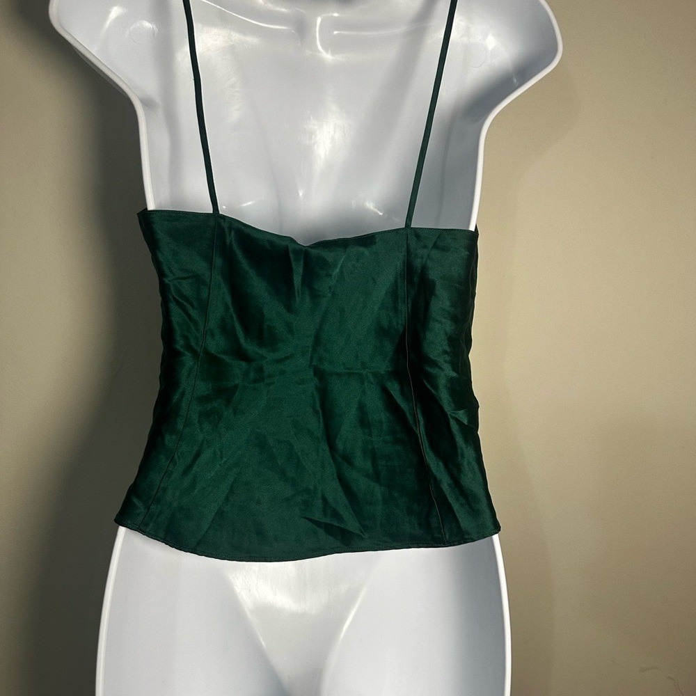 как выглядит VTG Victorias Secret Gold Label 100 Silk Camisole Emerald Green Mesh Inset S фото