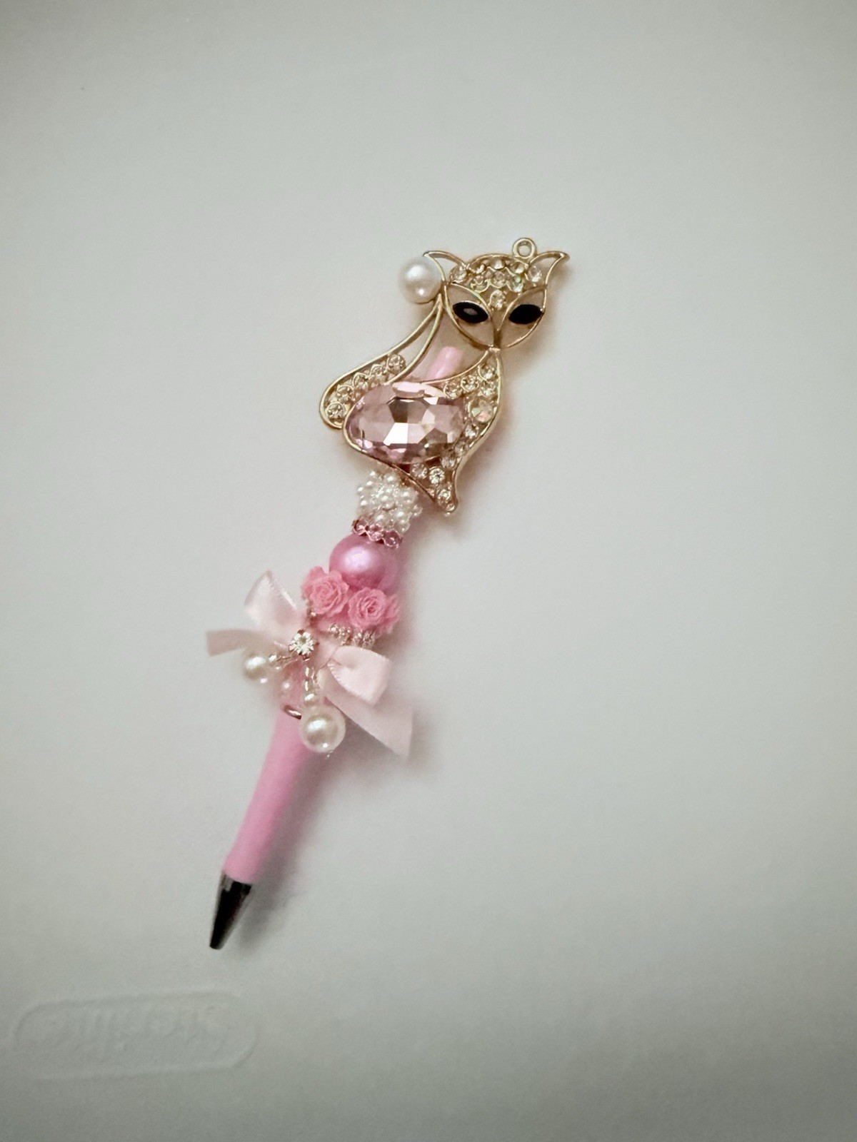 • Beaded pen BLING Custom Gifts Basket Fillers Collect Rhinestone Cat Pink