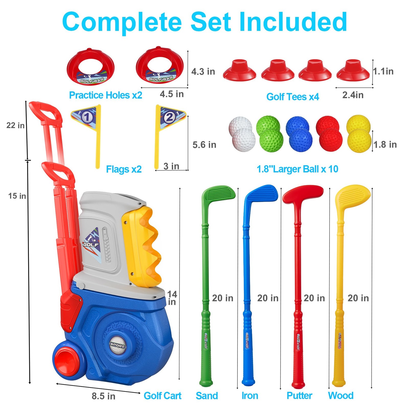 как выглядит Toddler Golf Set with 4 Clubs, 10 Balls, Indoor Outdoor Perfect Gift for Ages фото