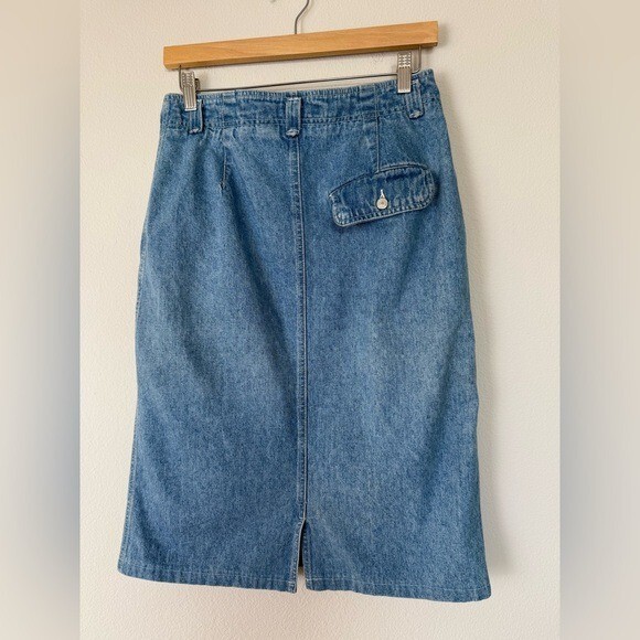 как выглядит Vintage 90s Y2K Denim Midi Skirt Womens Medium Prairie Western Festival Bohemian фото