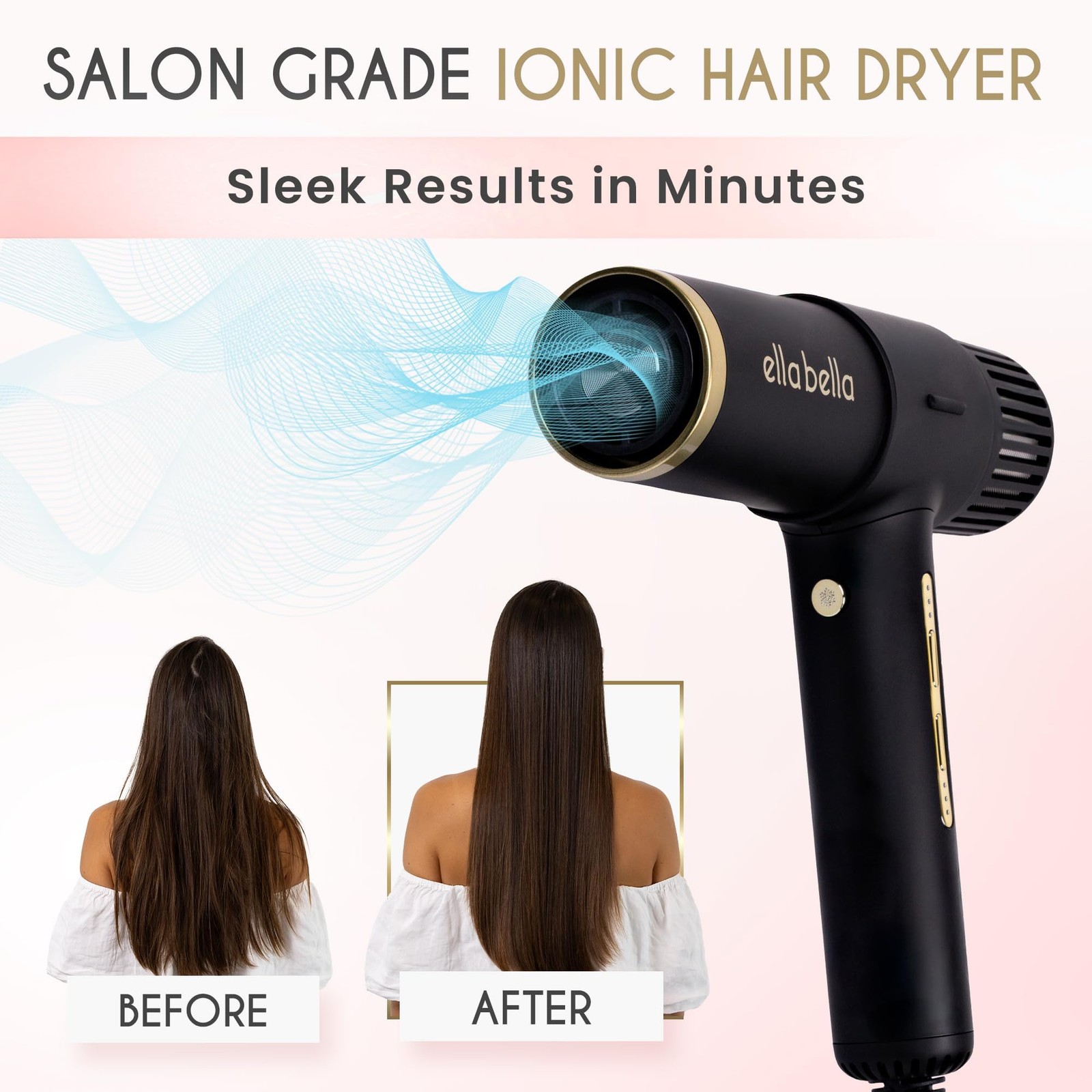 Hair Dryer Ionic Salon Diffuser Negative Ion Intelligent Heat Control ELLA BELLA