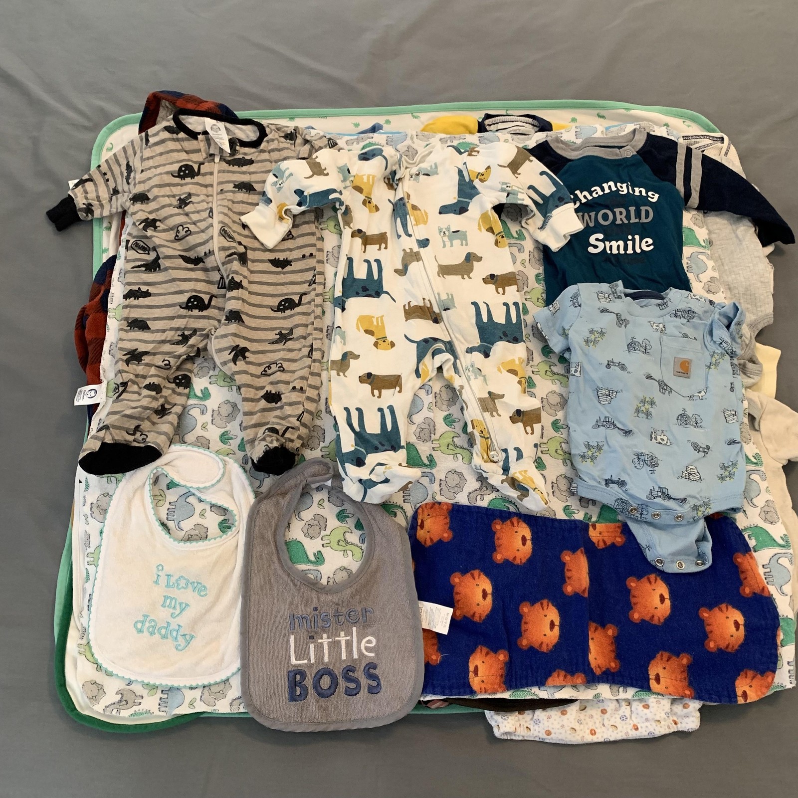 как выглядит Baby Boy Clothes Lot Of 45 Newborn-3 Months Mixed Brands Multicolor Bibs Etc. фото