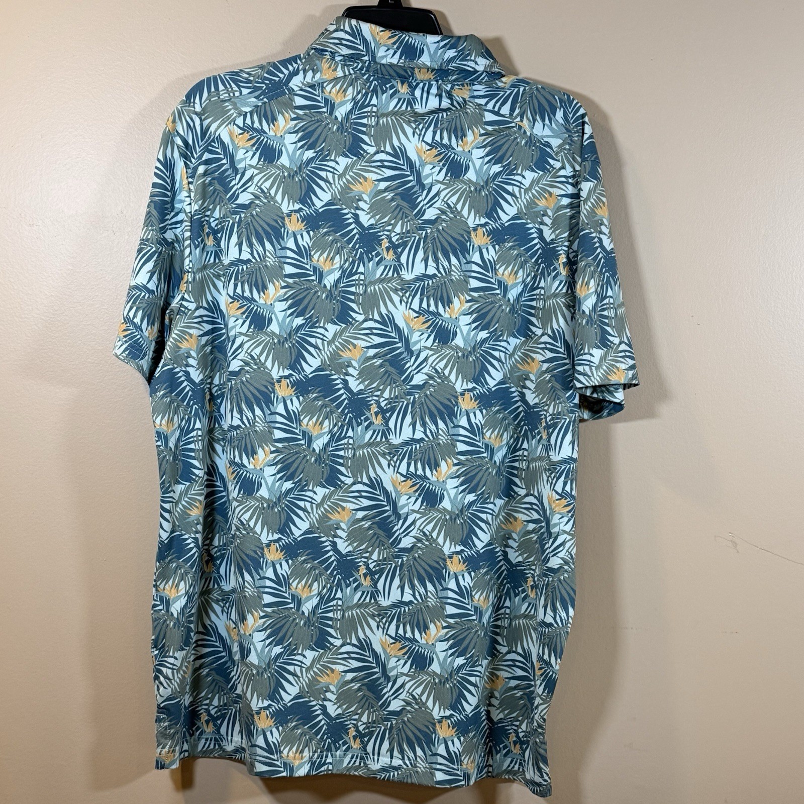 как выглядит Izod Blue Golf Polo Stretch Palm Leaf All Over Print Performance Athleisure фото