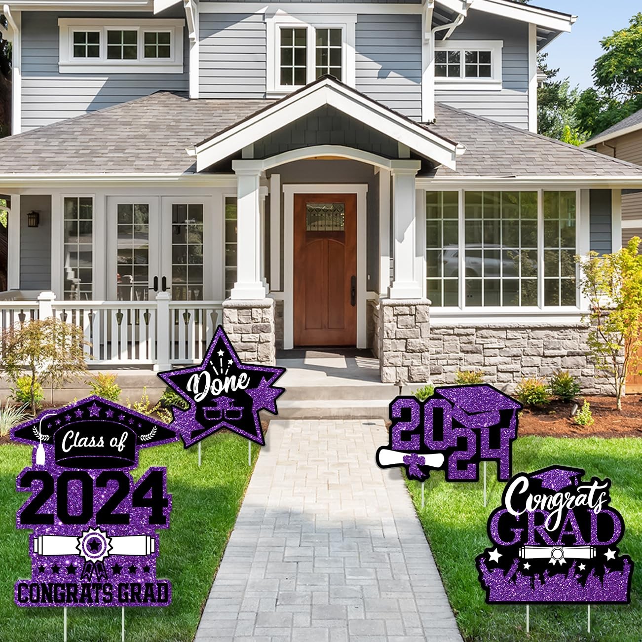 Purple and Black Class of 2024 Graduation Decorations Congrats Grad Yard Signs..