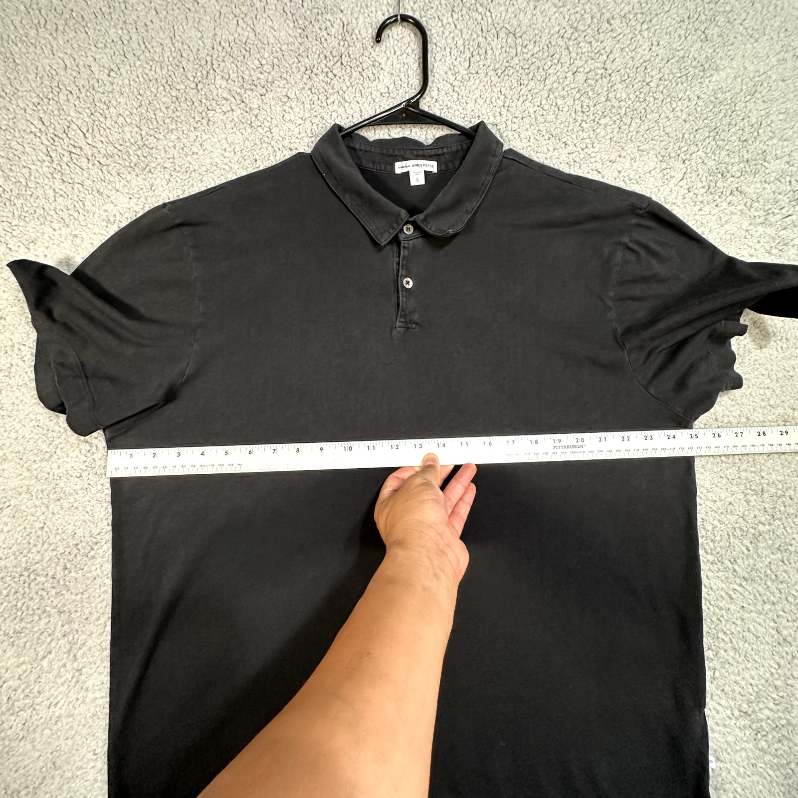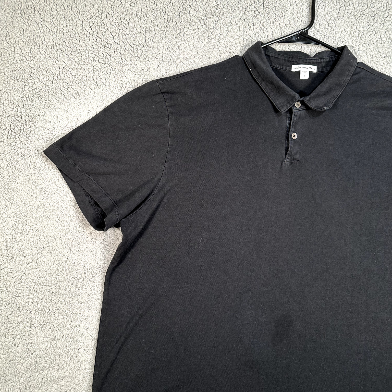 как выглядит James Perse Polo Shirt Standard Mens Size 5 Black Casual Short Sleeve фото