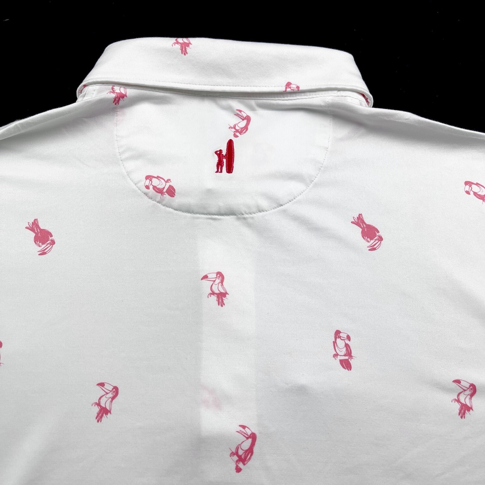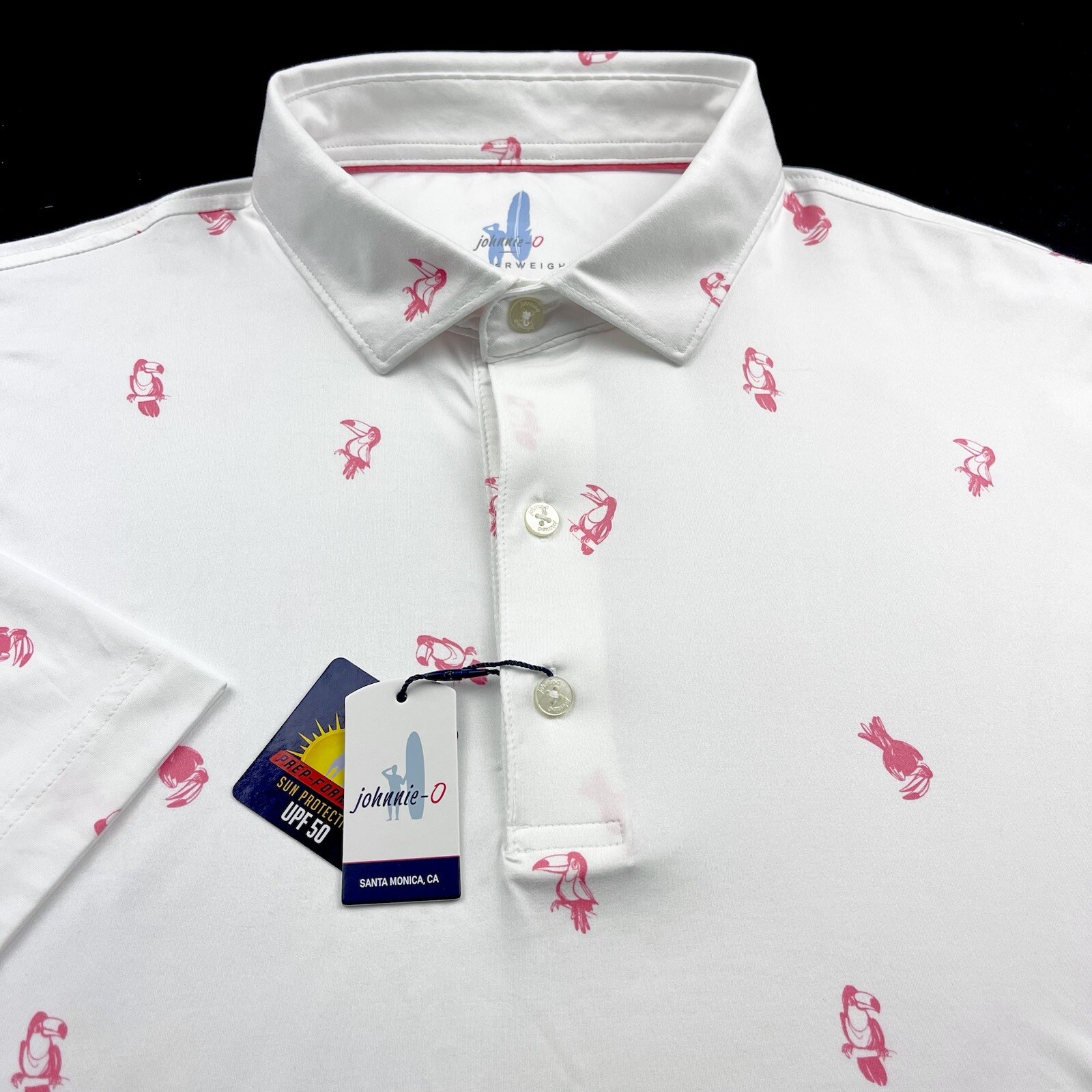 Johnnie O Featherweight Tropical Bird Print Polo Shirt White Large