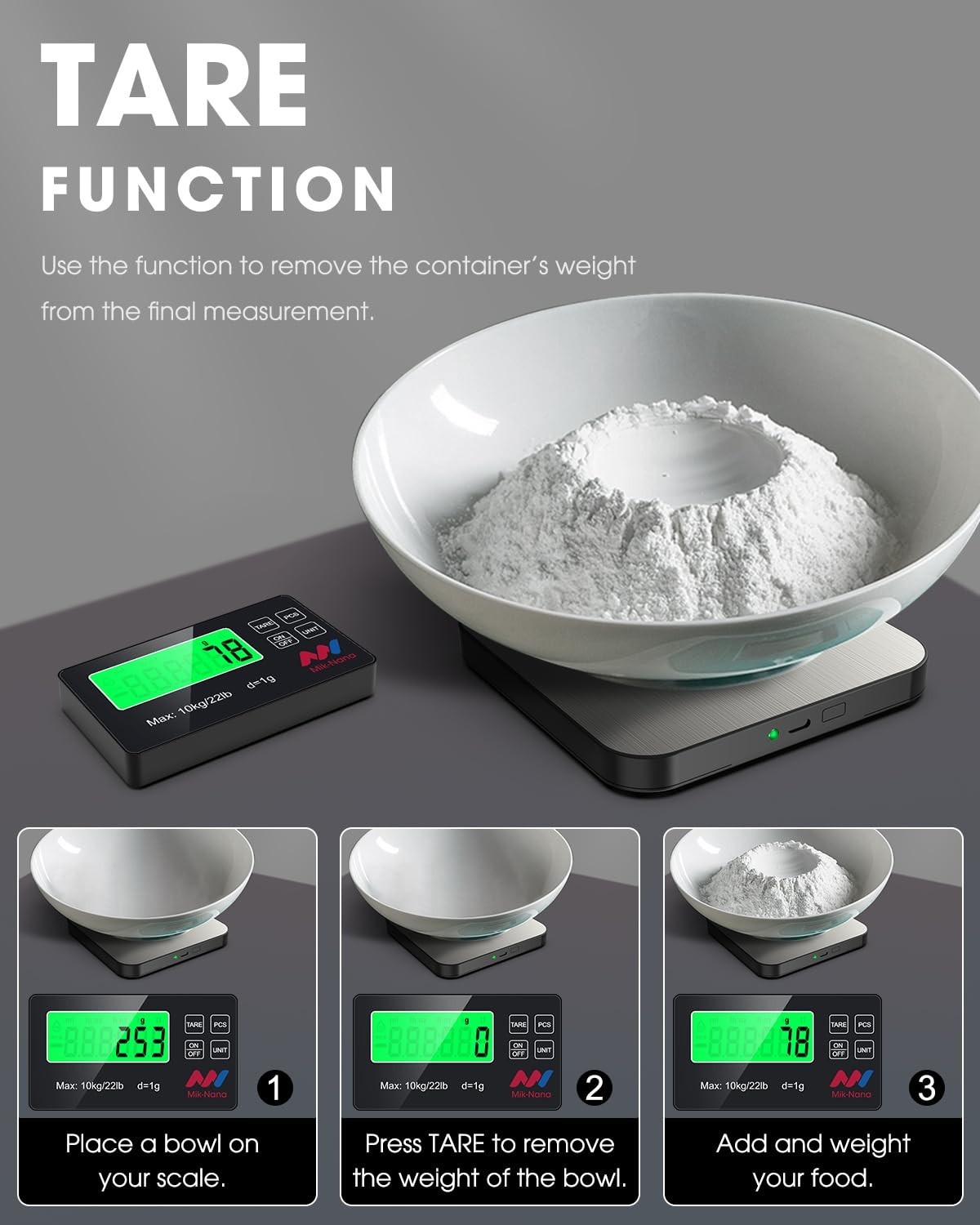 Food Scale 22lb Digital Kitchen Scale with 7 Units LCD Display Tare Function
