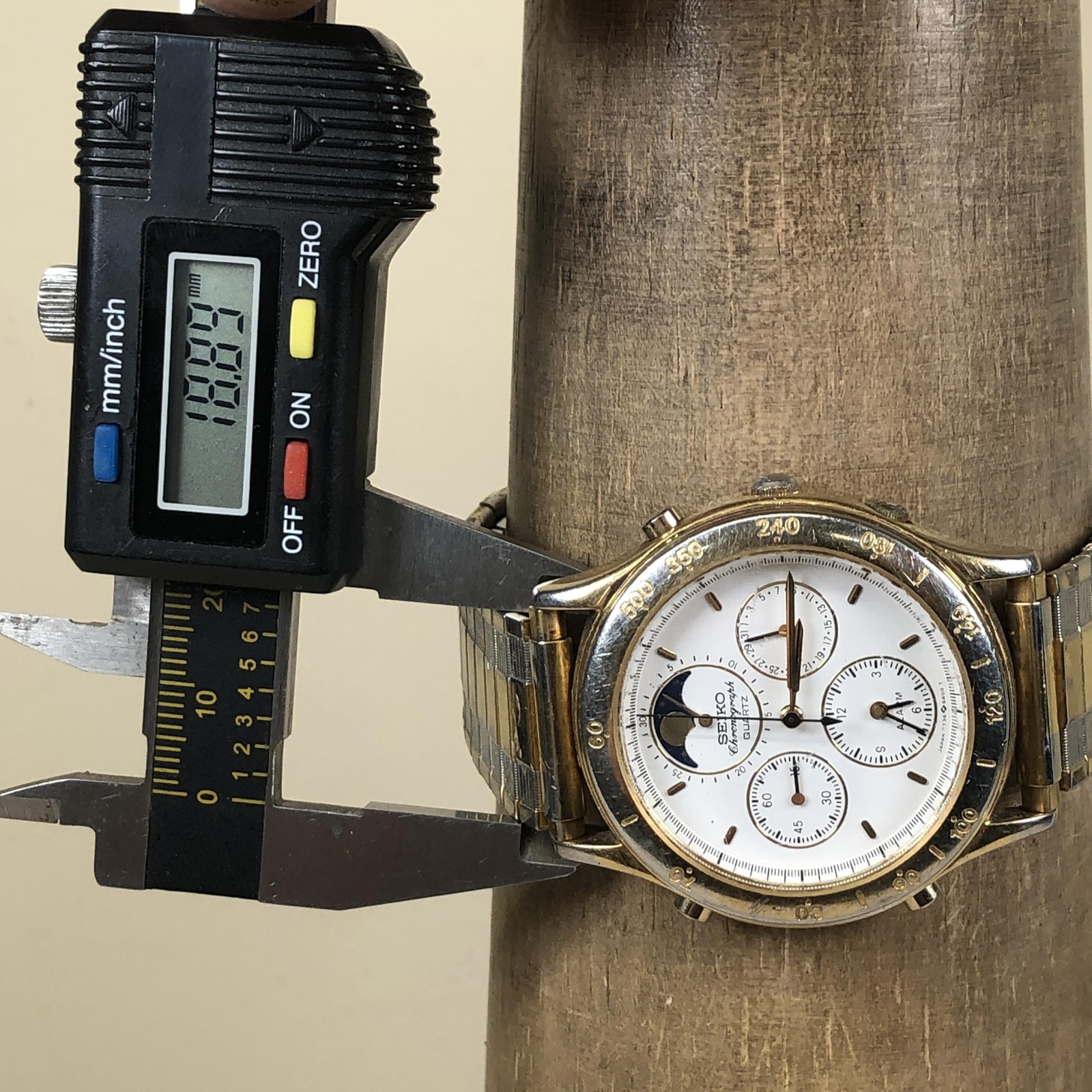 как выглядит Vintage Seiko Chronograph Watch Mens 36mm White Dial Moonphase Gold 7T36-6A29 фото