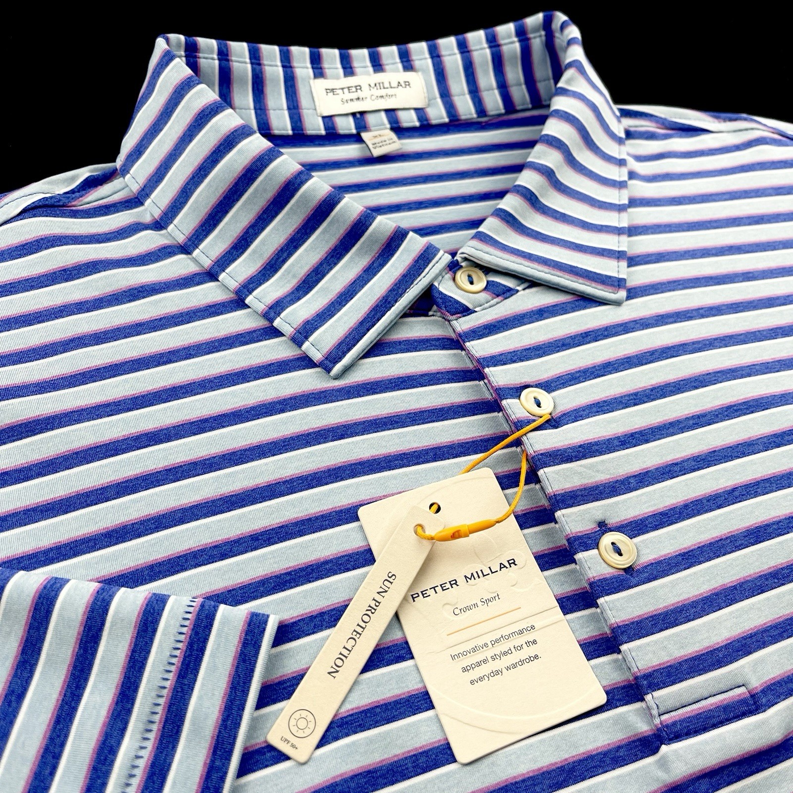 Peter Millar Crown Sport Summer Comfort Performance Stripe Polo Sapphire XL
