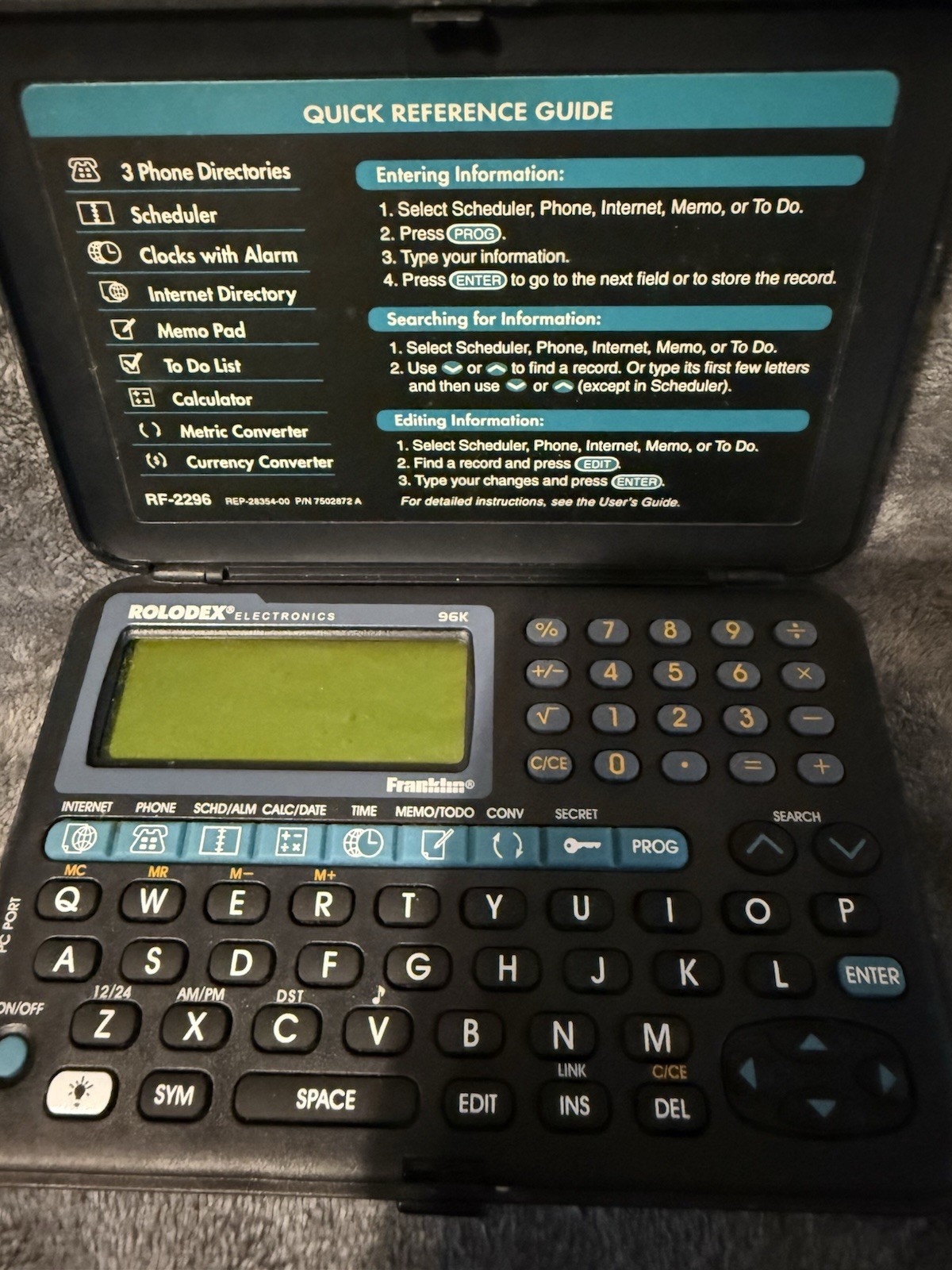 как выглядит Vintage Rolodex Personal Electronic Organizer RF-2296 Tested With Manual фото