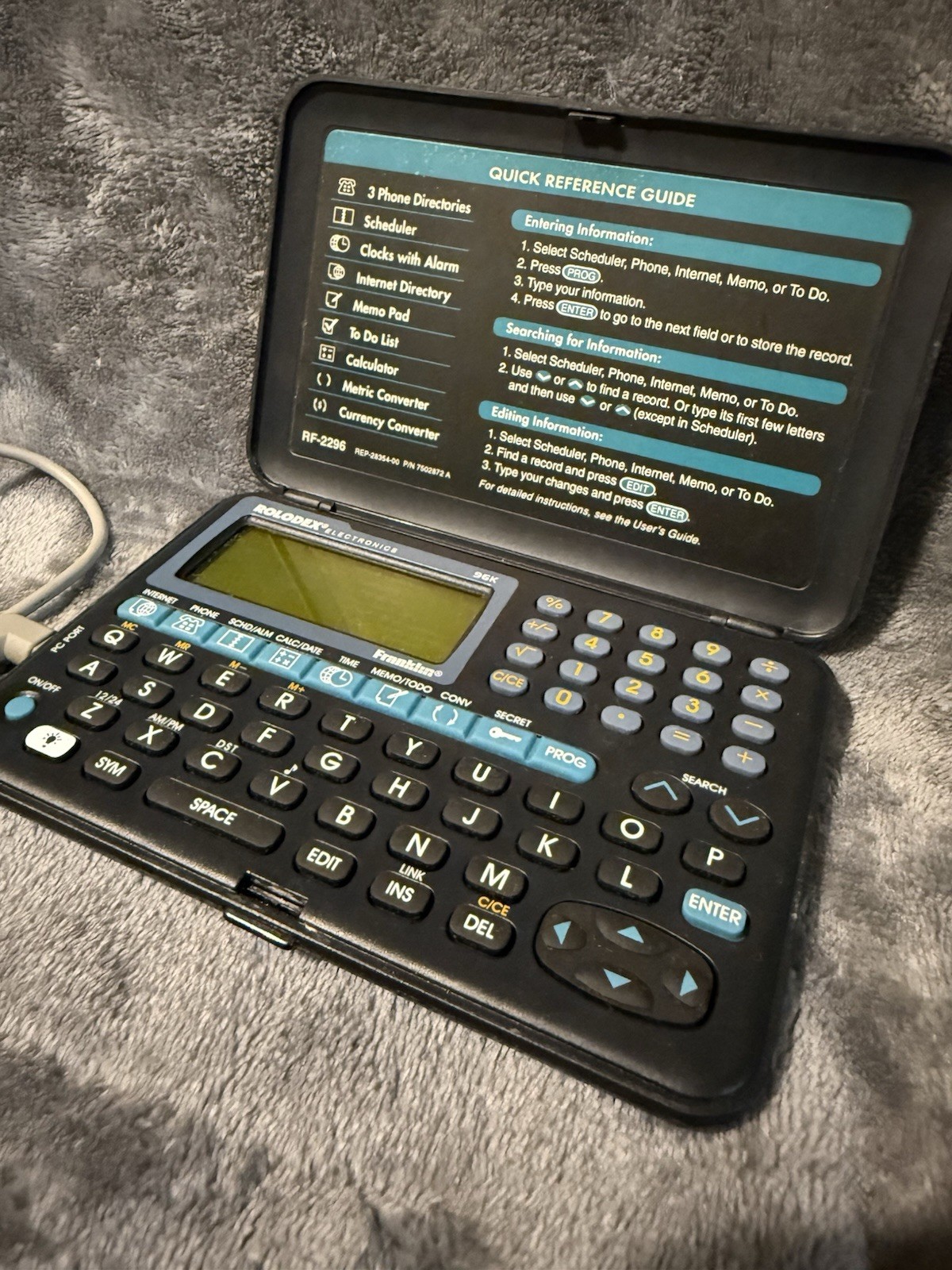 Vintage Rolodex Personal Electronic Organizer RF-2296 Tested With Manual
