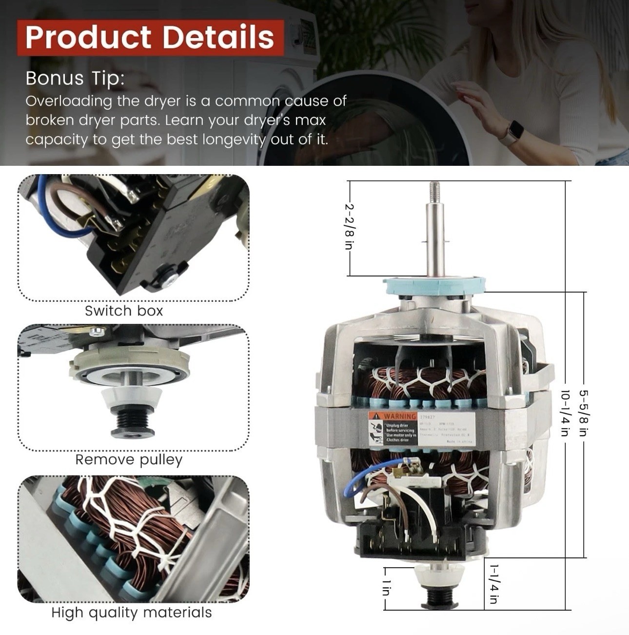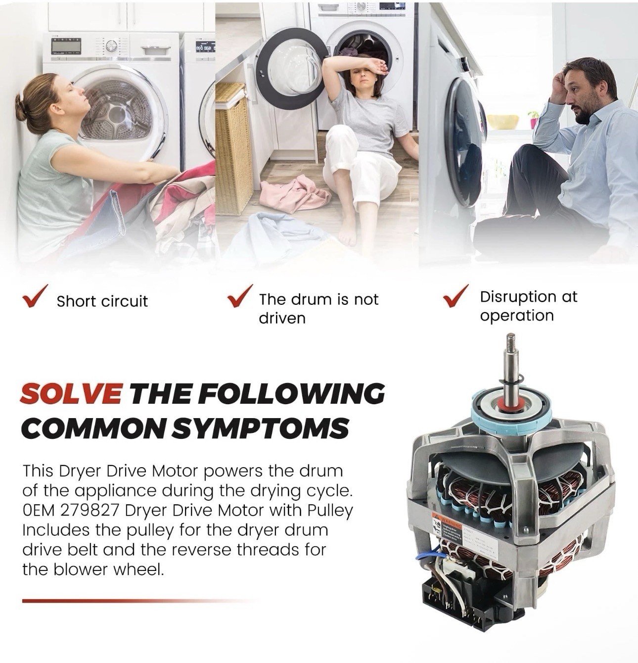 279827 Dryer Drive Motor w/ Pulley for Maytag Kitchenaid Kenmore Whirlpool
