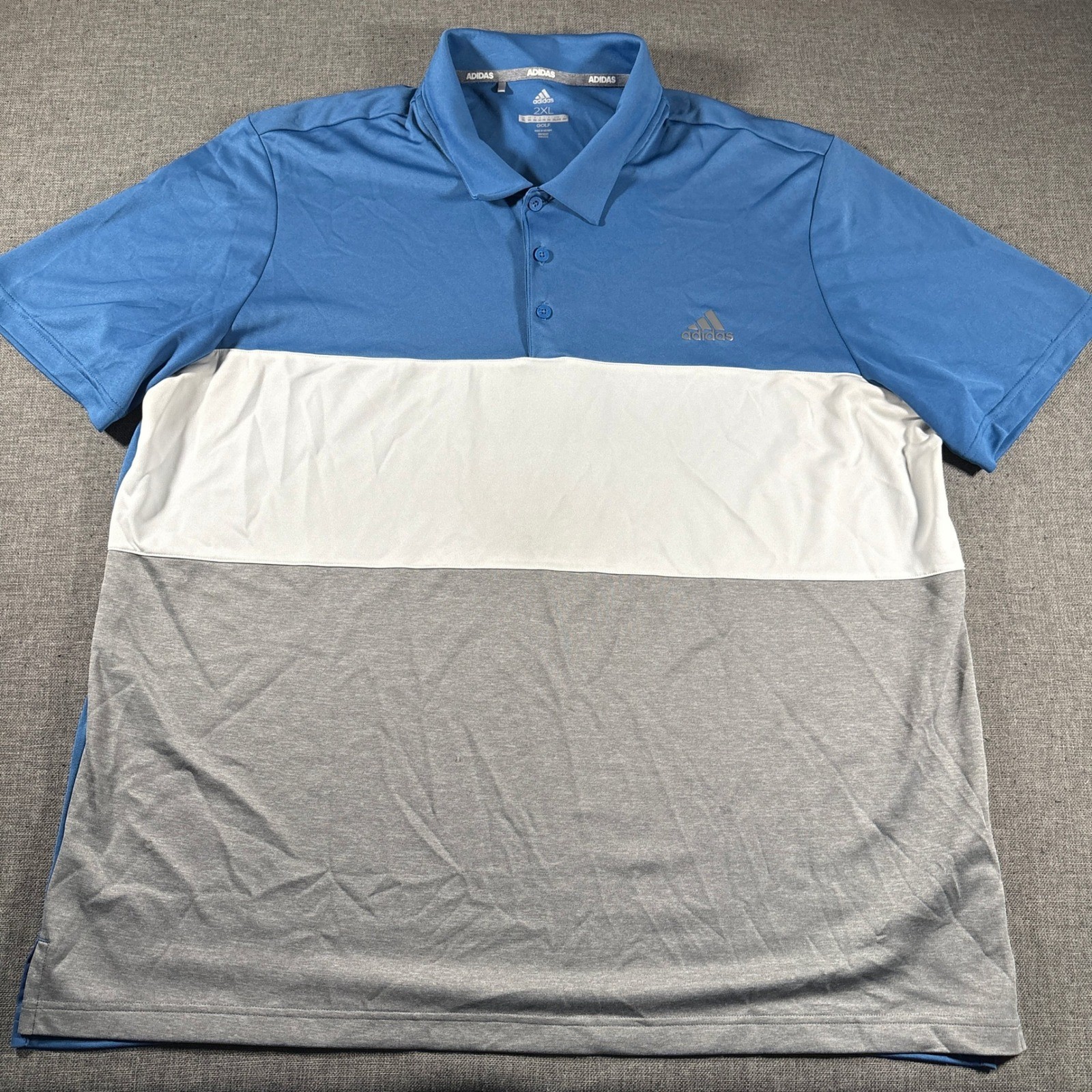 Adidas Golf Polo Shirt Mens 2XL Blue White Colorblock Performance Short Sleeve