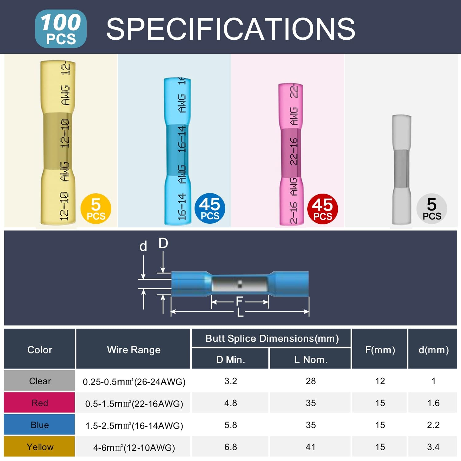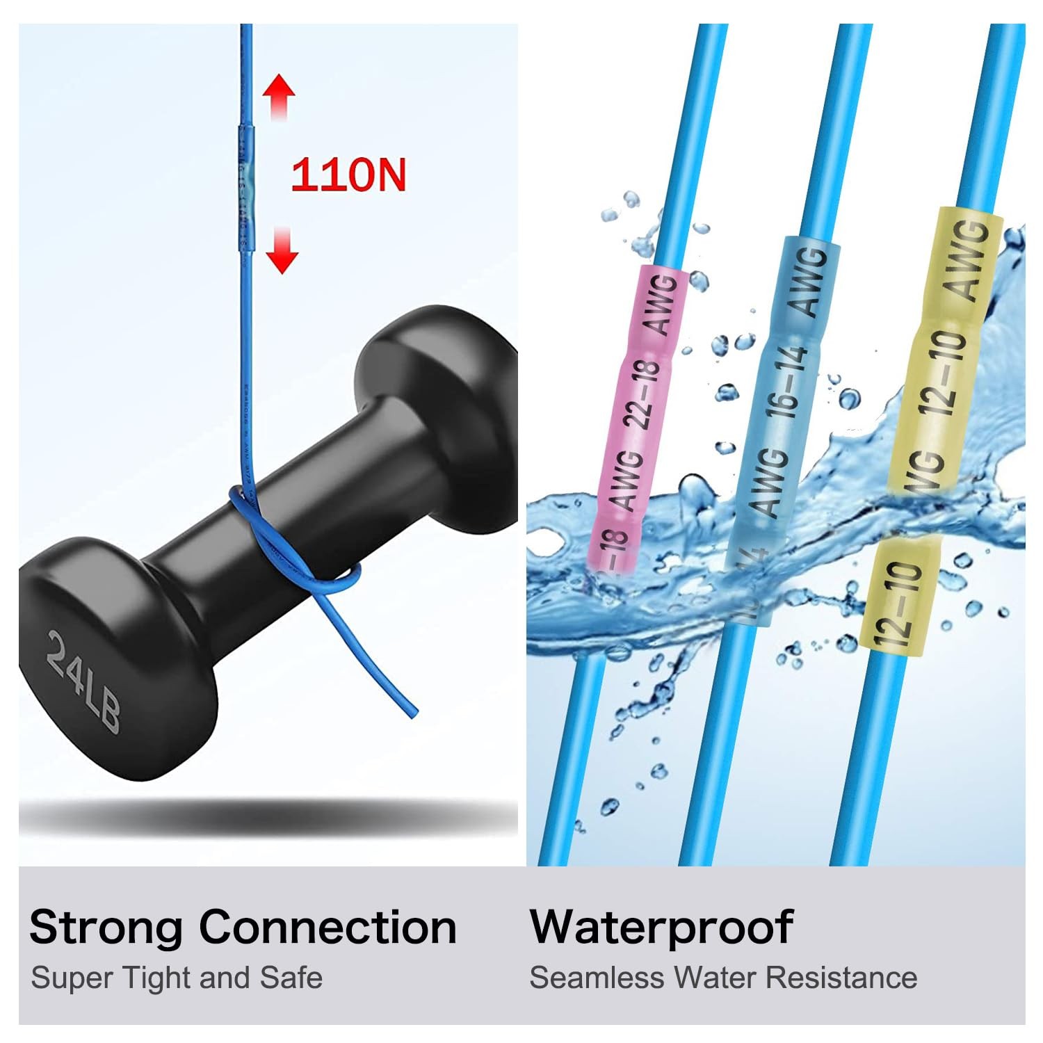 Heat Shrink Butt Crimp Connectors Kit 26,24,22,20,18,16,14,12,10 GA Waterproo...