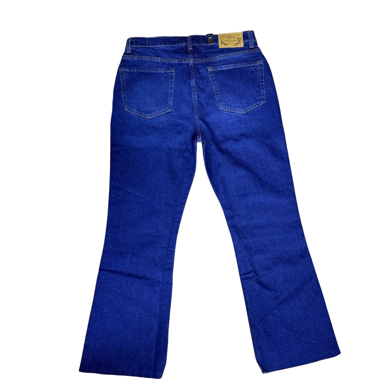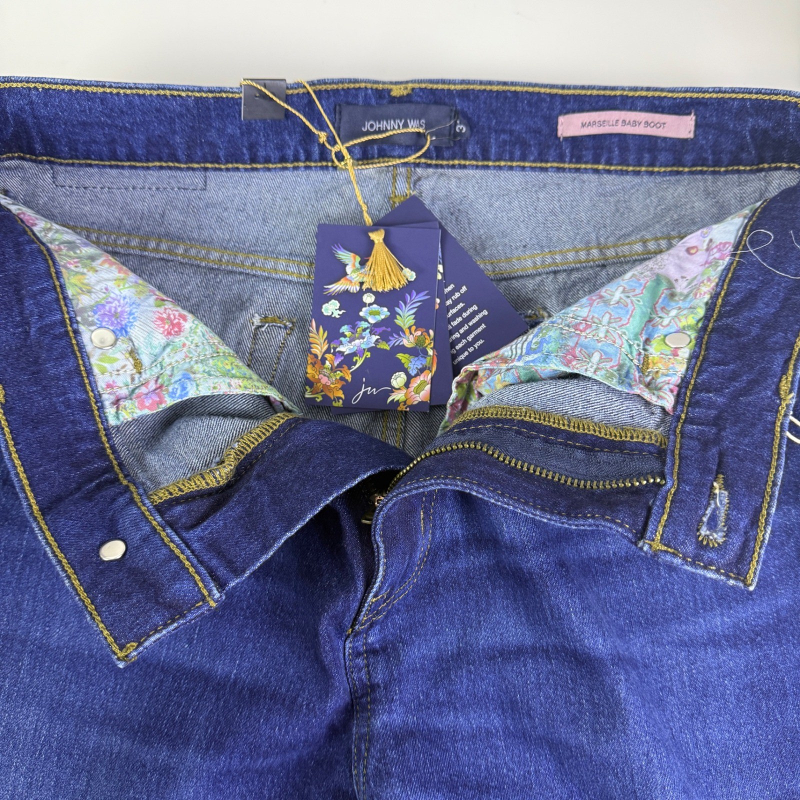 как выглядит JOHNNY WAS MARSEILLE BABY BOOT JEANS SIZE 31 DARK WASH BOOTCUT CROPPED RAW HEM фото