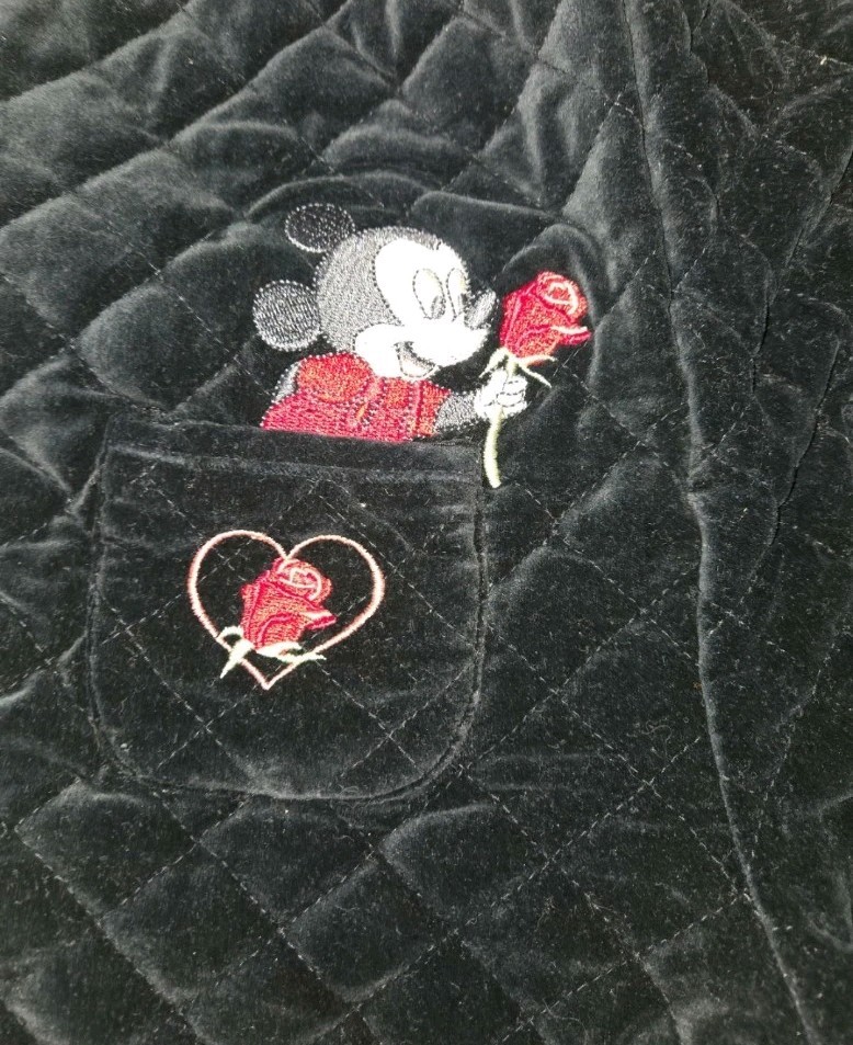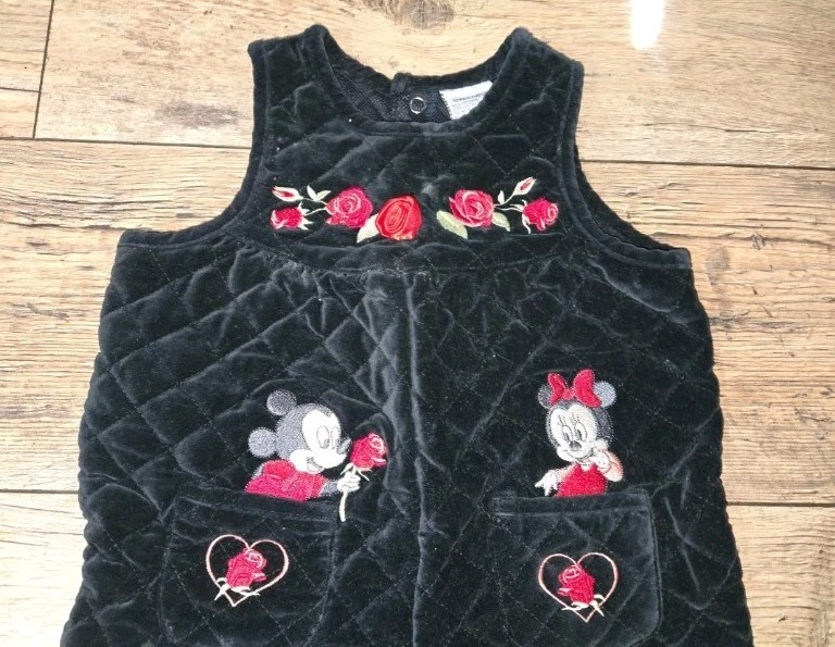 как выглядит Vintage Disney Mickey Minnie Quilted Black Roses Baby Romper Overalls 12Months фото