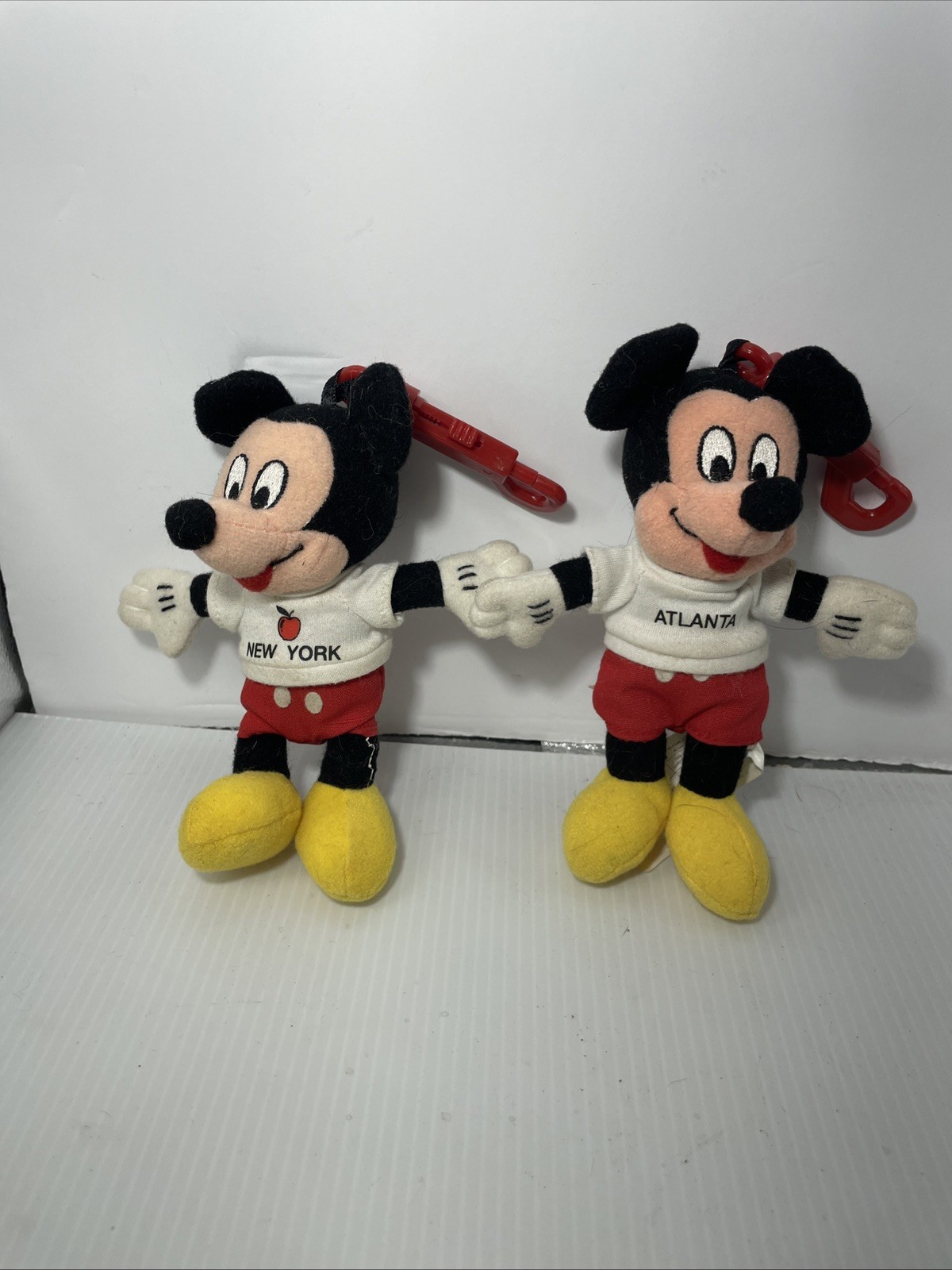 Rare set of 2 Disney Mickey 4 Keychain Beanbag Plush Atlanta New York pair