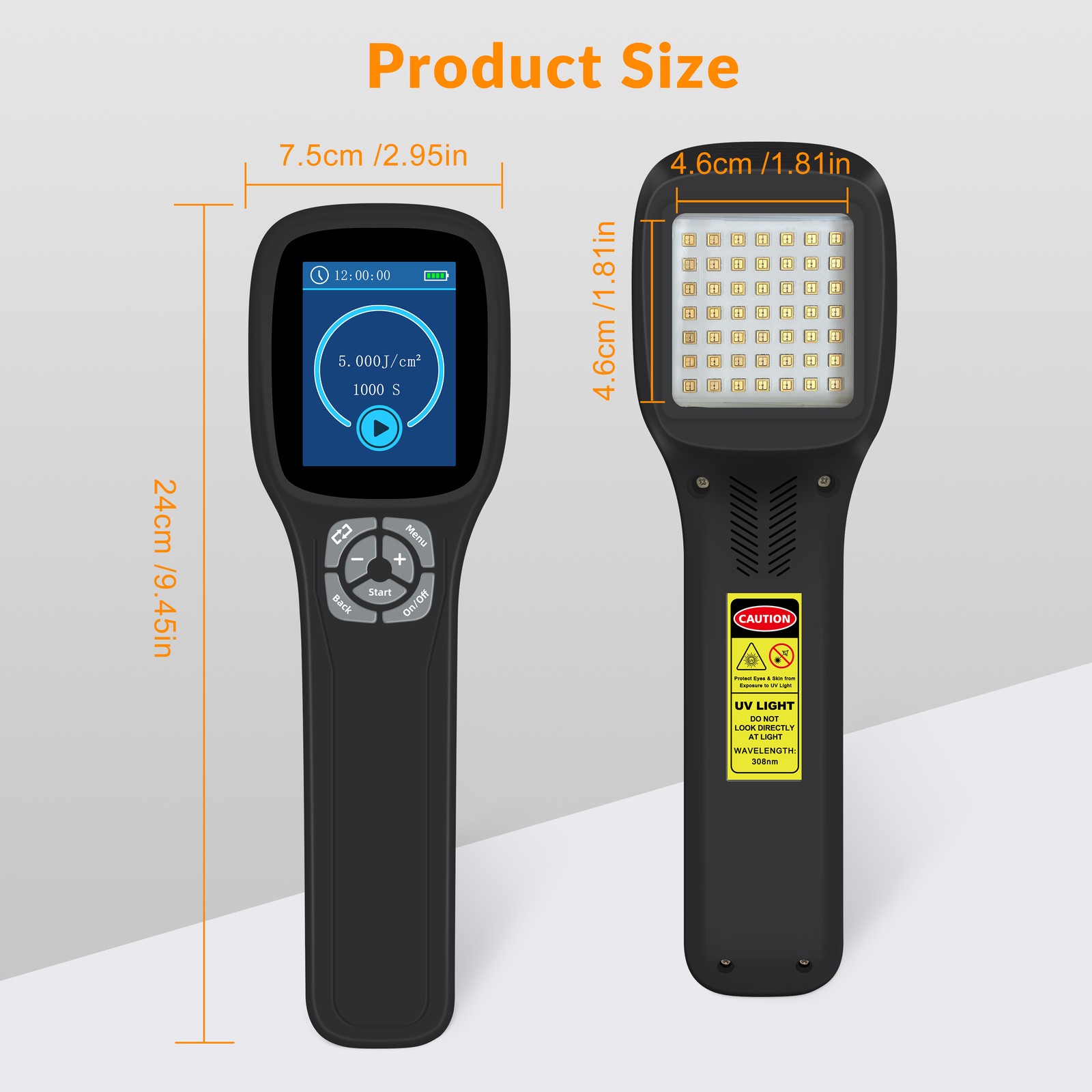 308nm UVB Light Therapy Excimer Light 5-40mW/cm2 for Body Skin Treatment Black