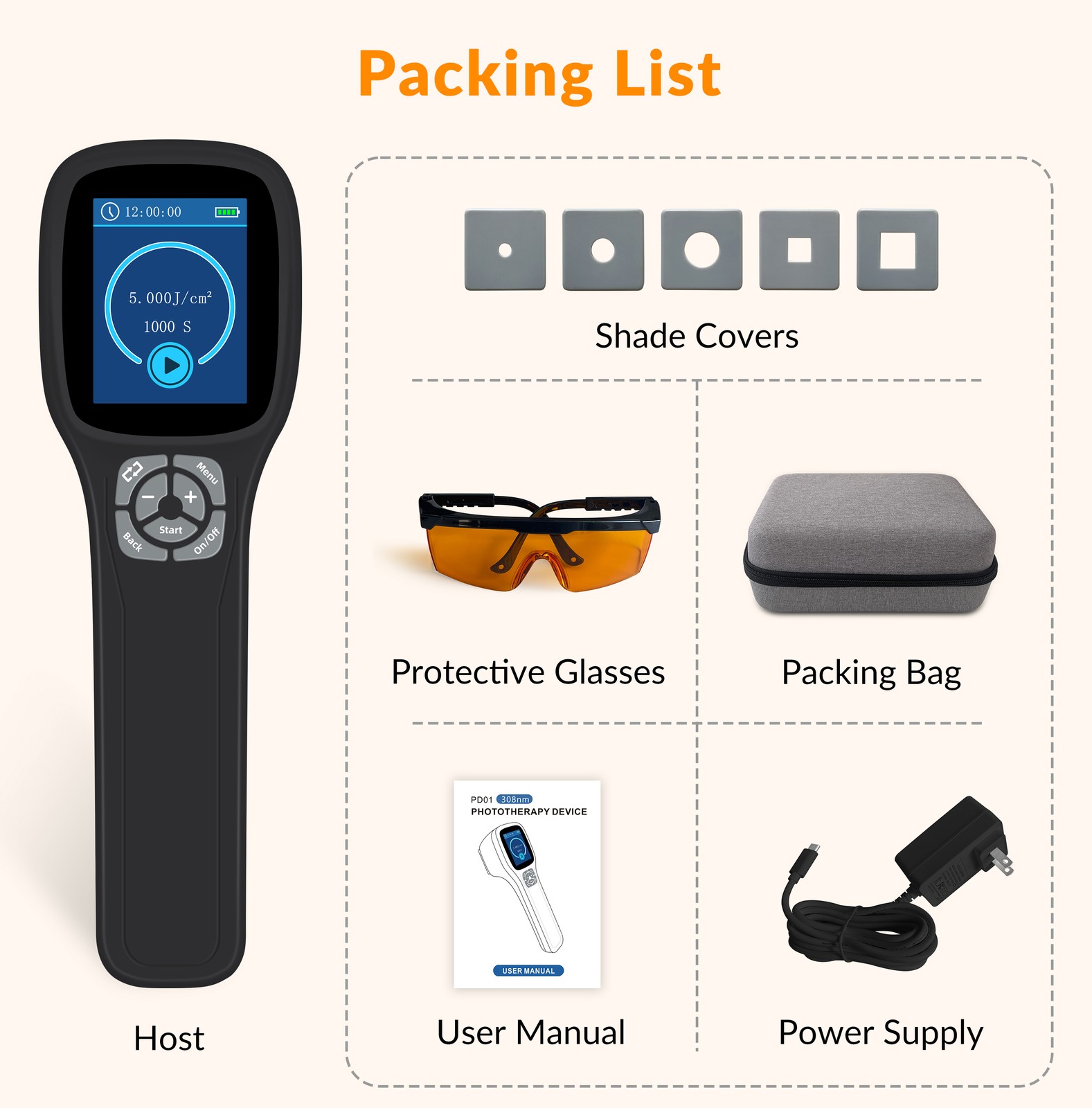 Intensity: 5~40mW/cm2, adjustable