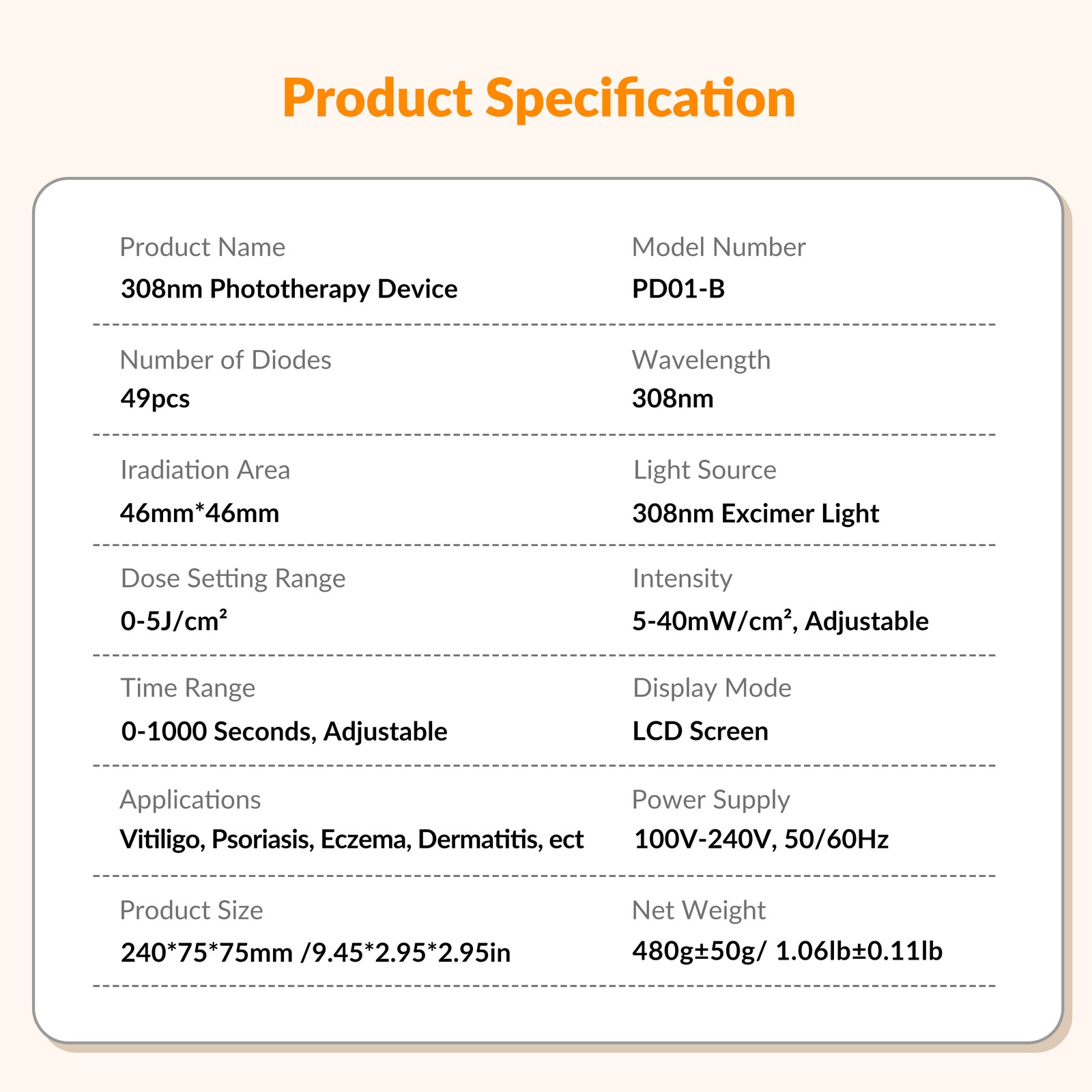 Main Purpose: Vitiligo, Eczema, Psoriasis