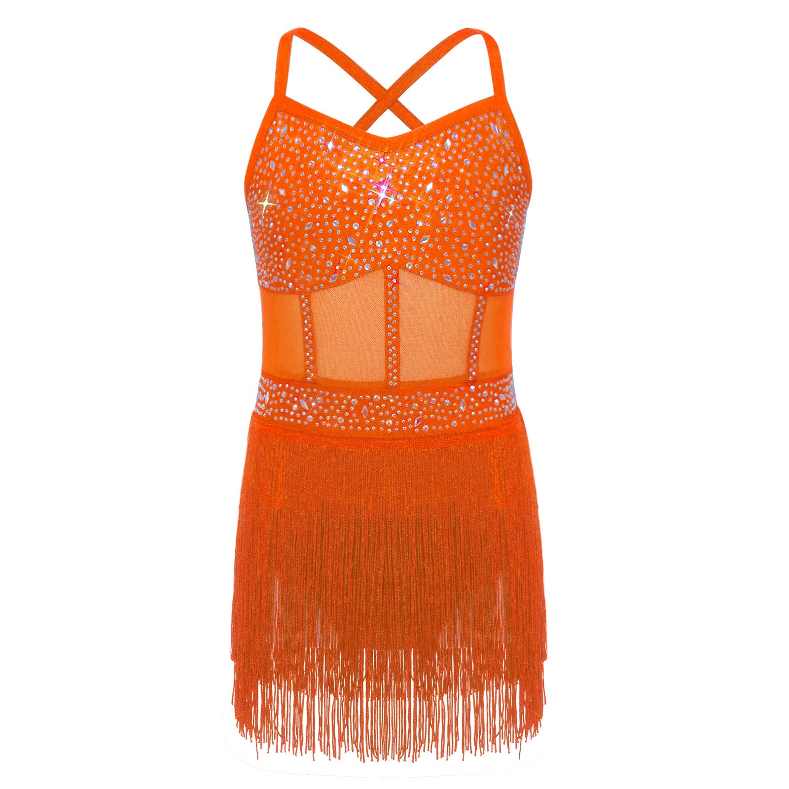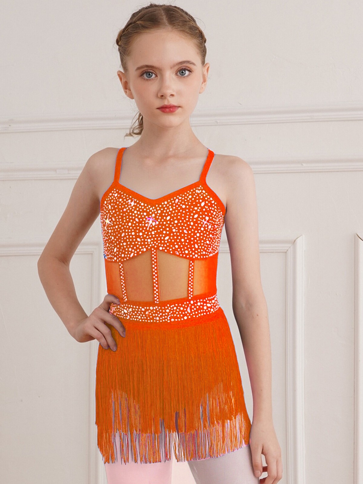 Girls Skirted Jazz Dance Dress Hip-Hop Dancewear Samba Ballroom Fringe Camisole