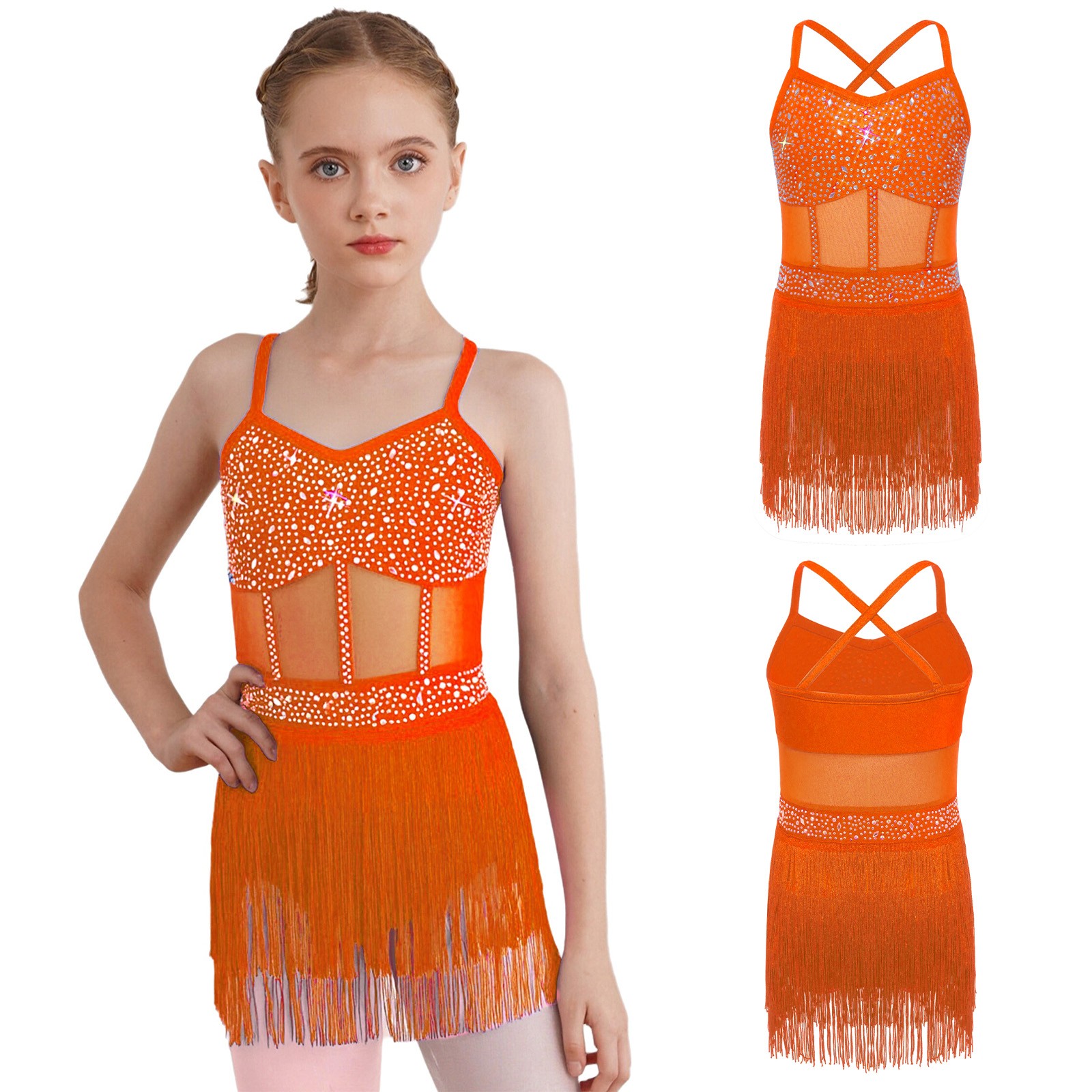 как выглядит Girls Skirted Jazz Dance Dress Hip-Hop Dancewear Samba Ballroom Fringe Camisole фото