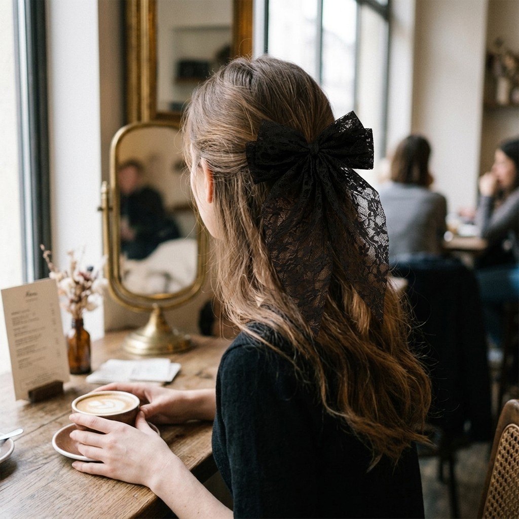 как выглядит Cute Black Lace Bow Hair Clip Embroidery Bowknot Spring Hair Clip for Girls фото