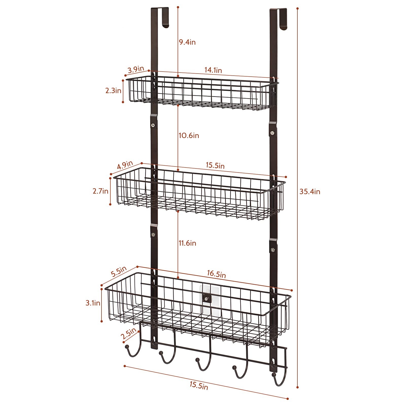 Over the Door Basket Organizer 3 Tier Hanging Basket Door Shelf Rack Heavy Du...