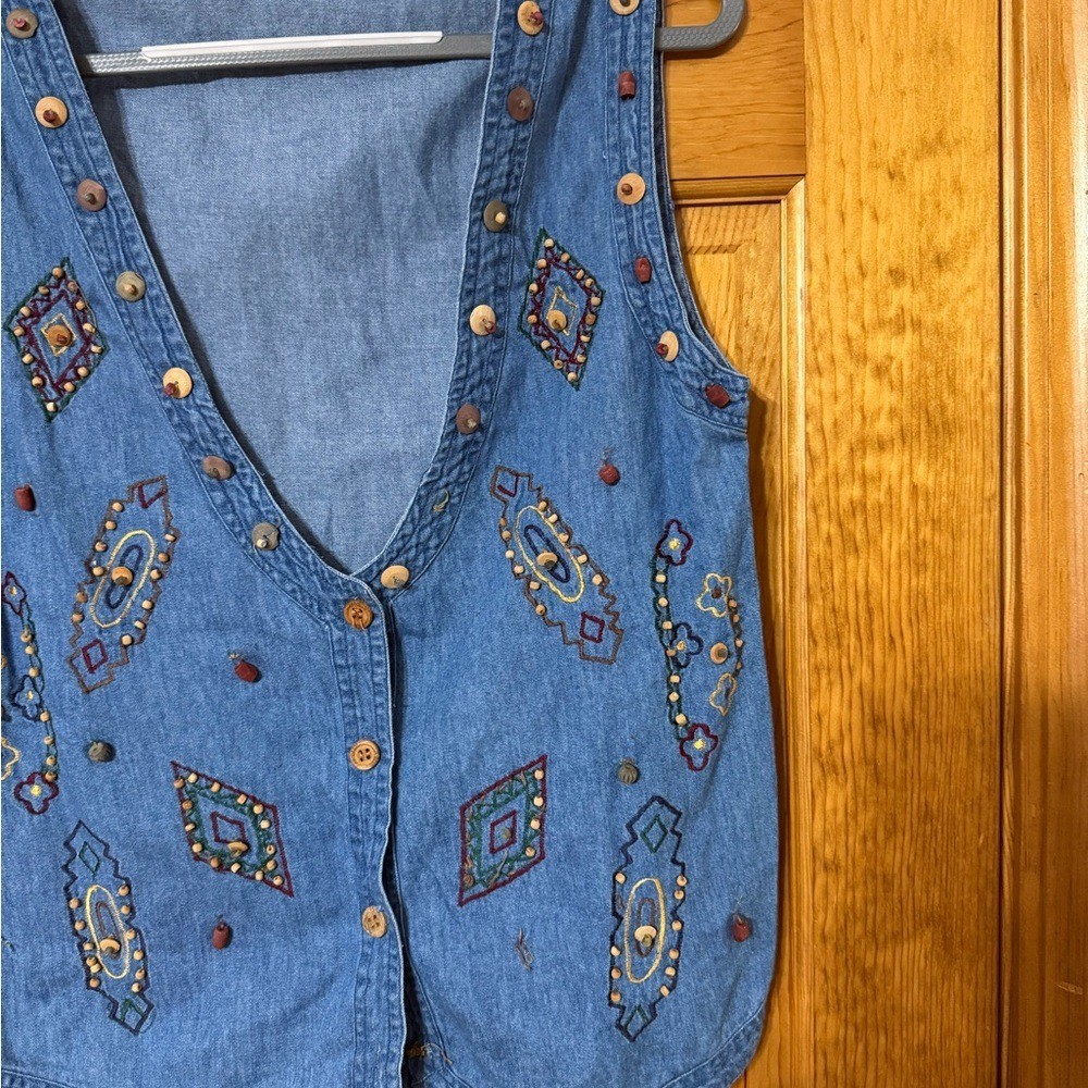 как выглядит Vintage Embroidered Denim Vest with Beads size Medium фото