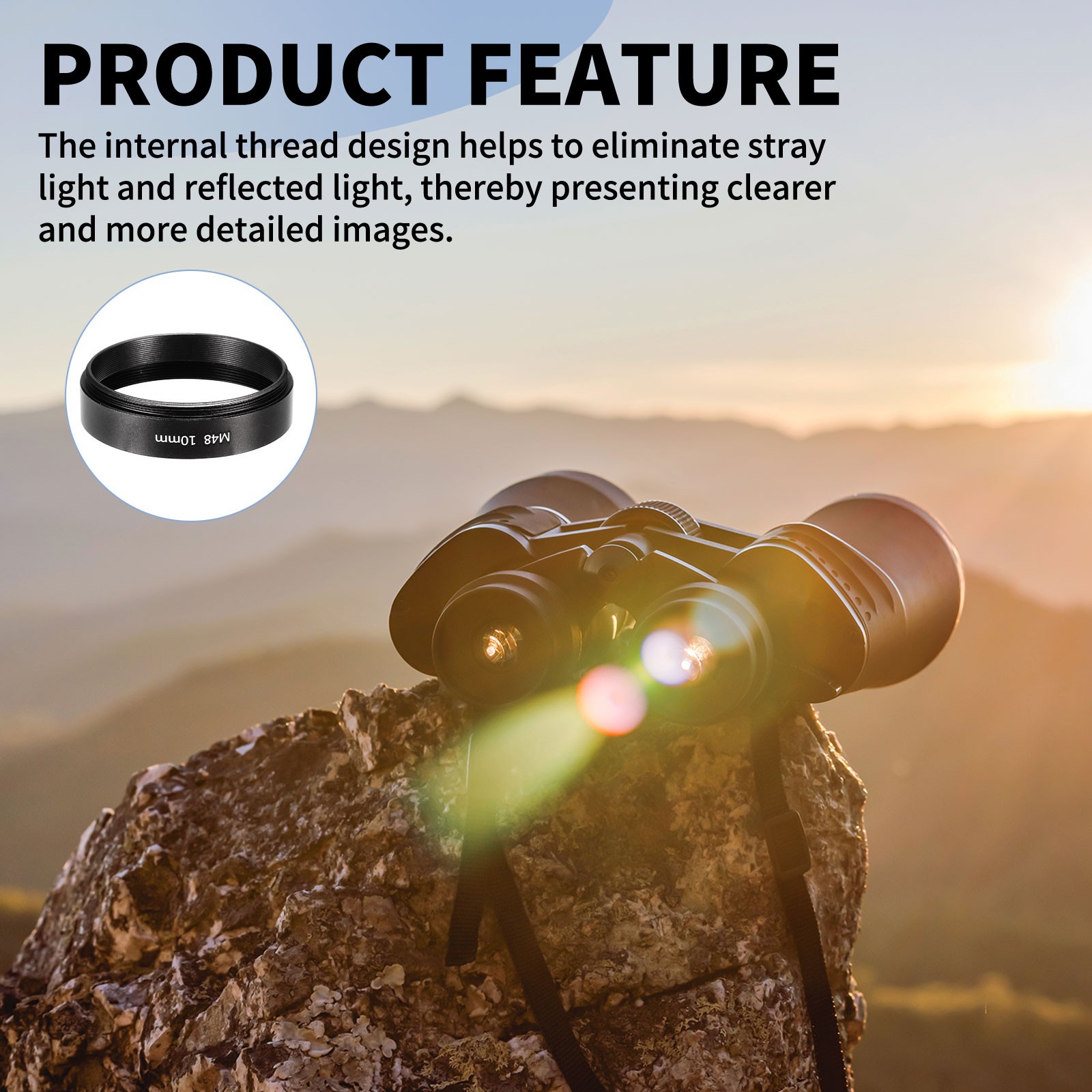 2Pcs 10mm M48 Lens Adapter Ring Extension Tube for Camera and Eyepiece, Black