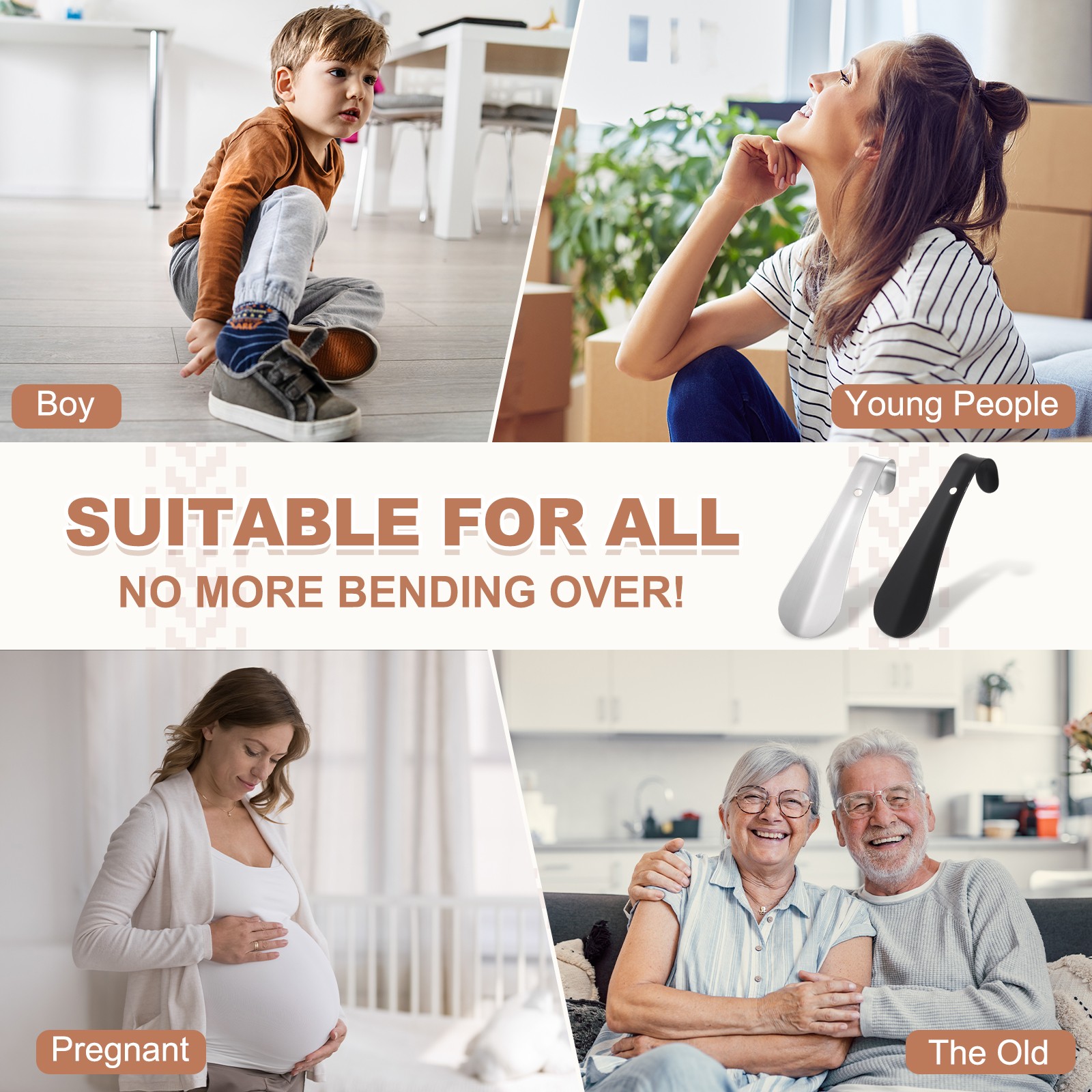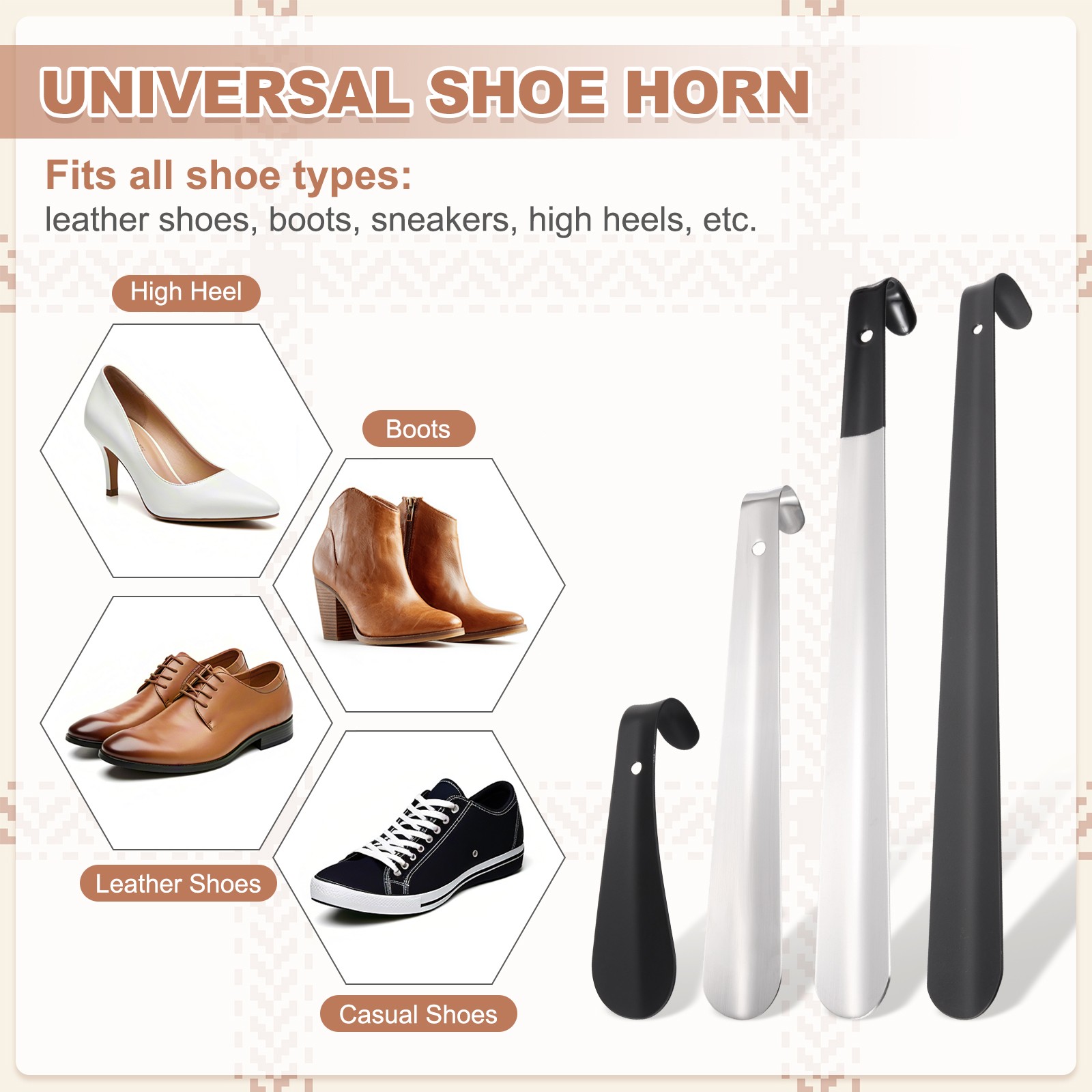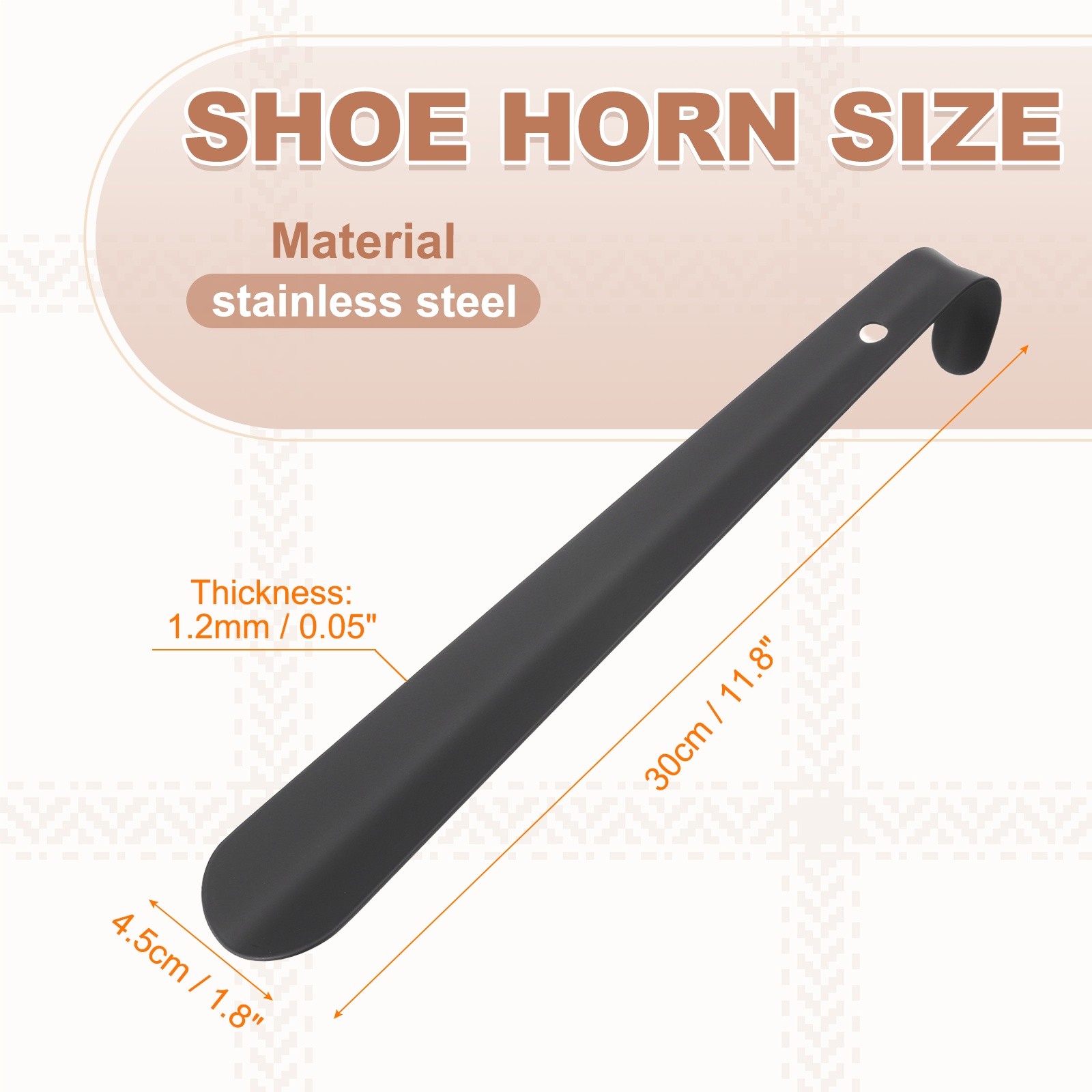 Shoe Horn 11.8 Metal Straight Handle Shoe Helper Shoehorns, Black