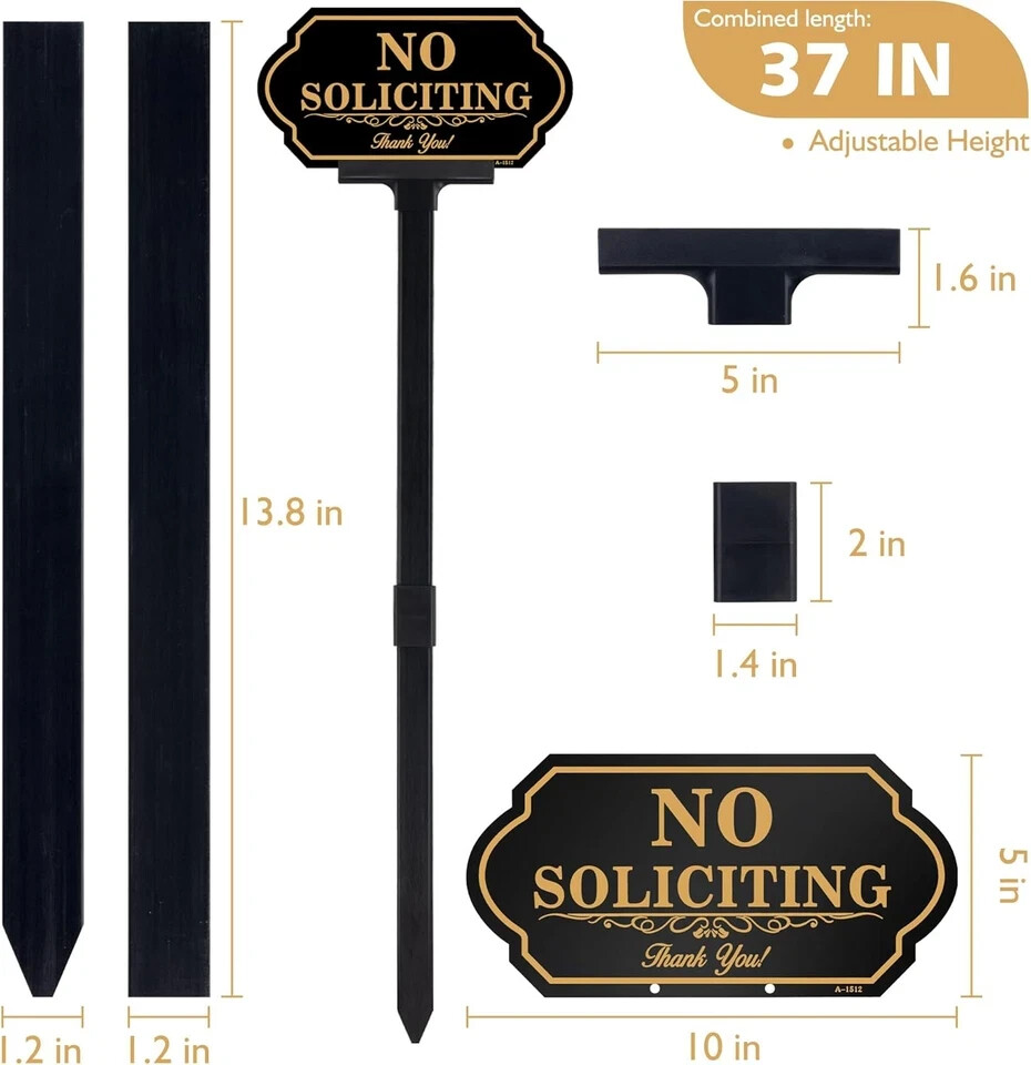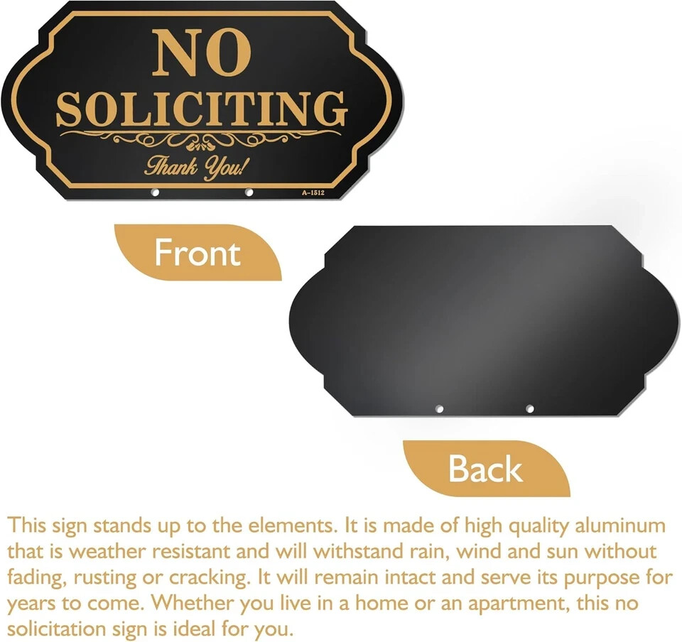 No Soliciting Sign for House with Stake - 50-Mil Thick Aluminum - 5X10 Inch/37 I