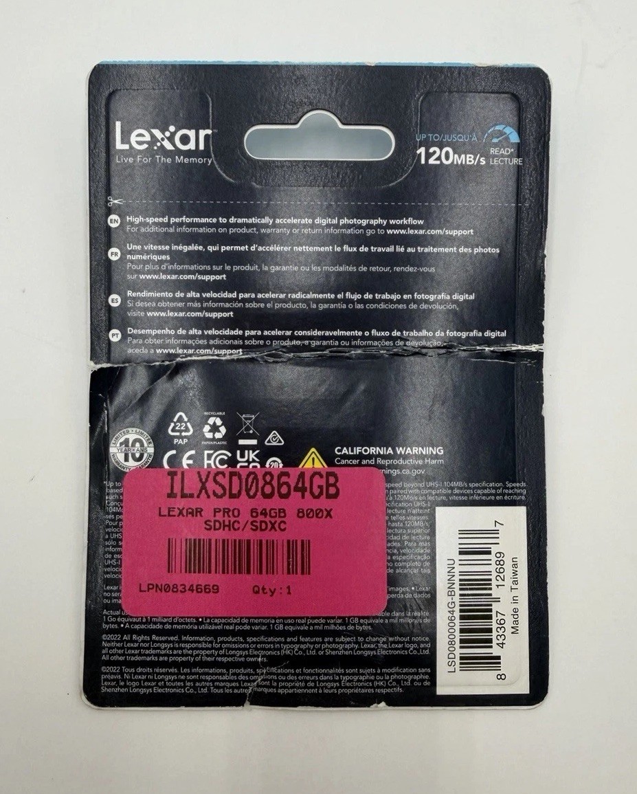 как выглядит Lexar 64GB High-Performance 800x UHS-I SDXC Memory Card BLUE Series фото