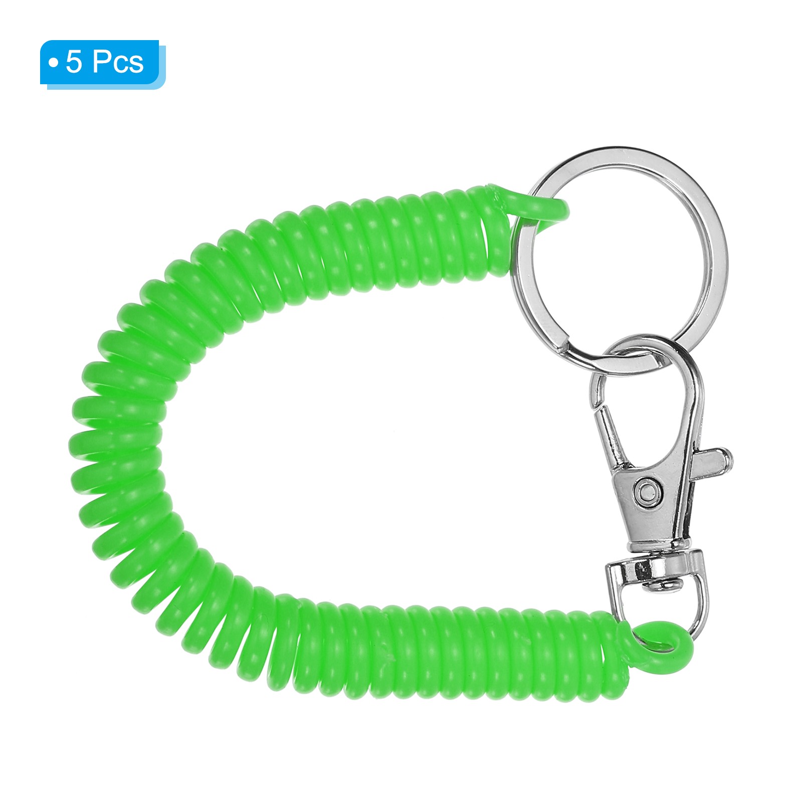 5pcs Retractable Coil Spring Keychain with Lobster Clasp 17.5cm Bright Green