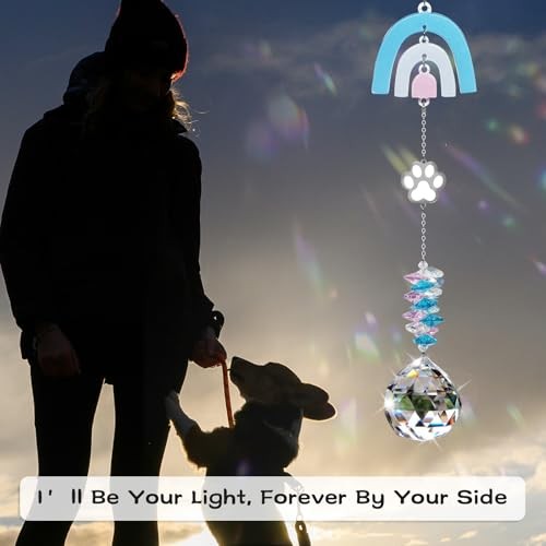 Pet Memorial Suncatcher with Crystal - Rainbow Bridge Pet Rainbow Memorial Blue