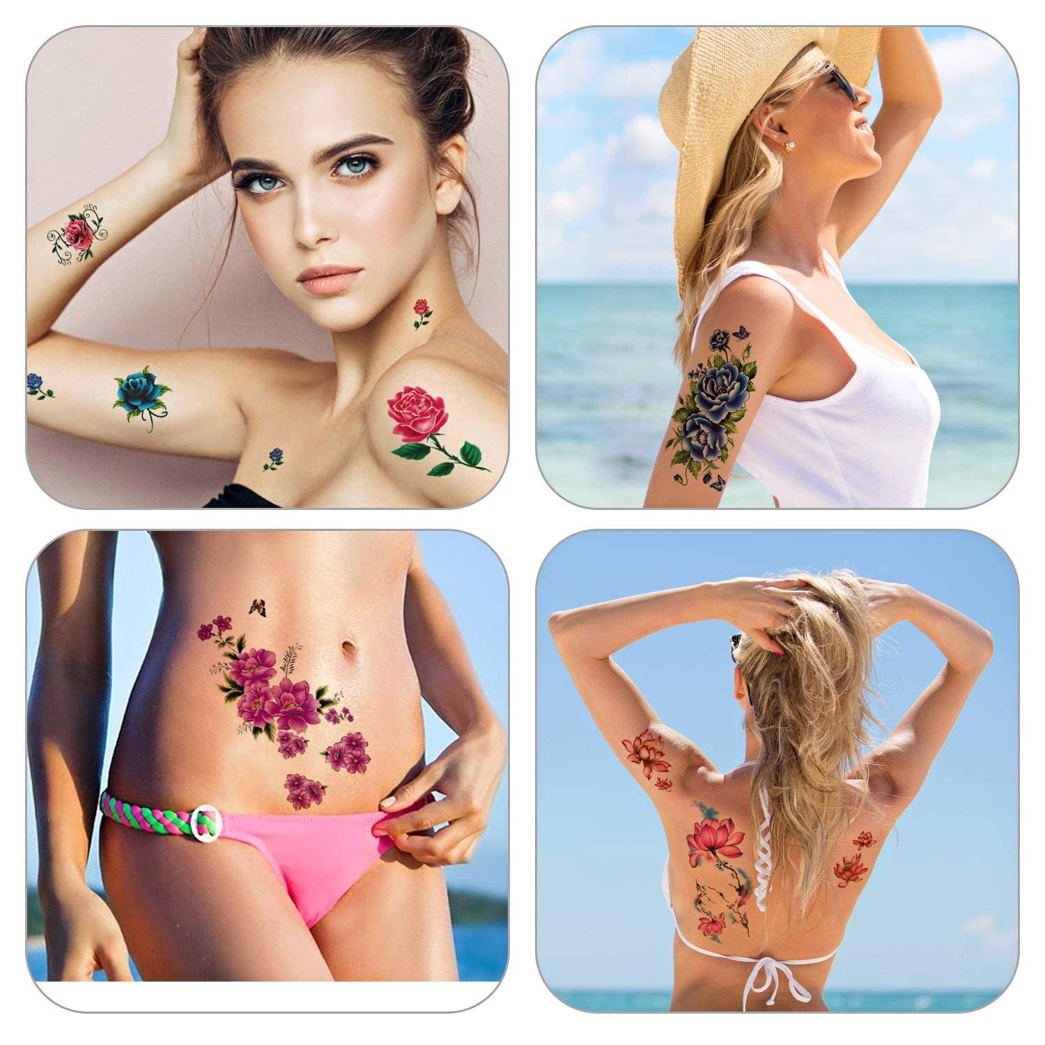 24 pieces Women Temporary Tattoos Large Flowers , Bright Colored Fake Tattoo...