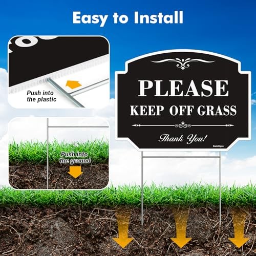 Keep Off Grass Sign with Stake, Keep Dogs off Sign for Lawn, 2Pack-12.6x9.5