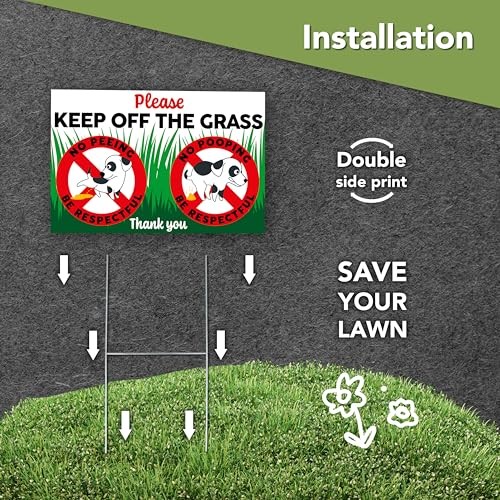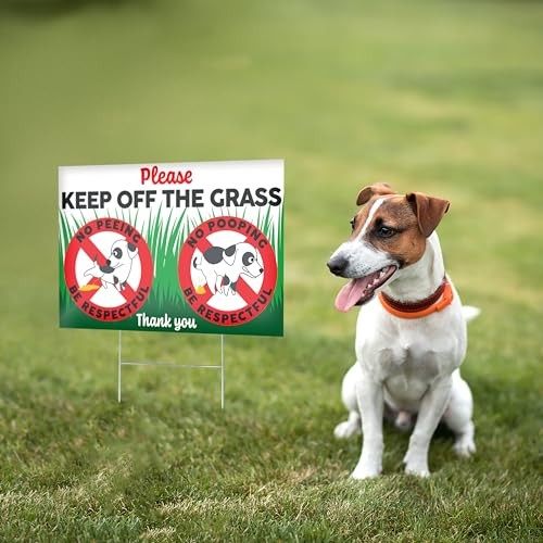 2 PC Keep Off Grass Signs for Yard, 8x12 DS Coroplast Dog No Poop or Pee set 2