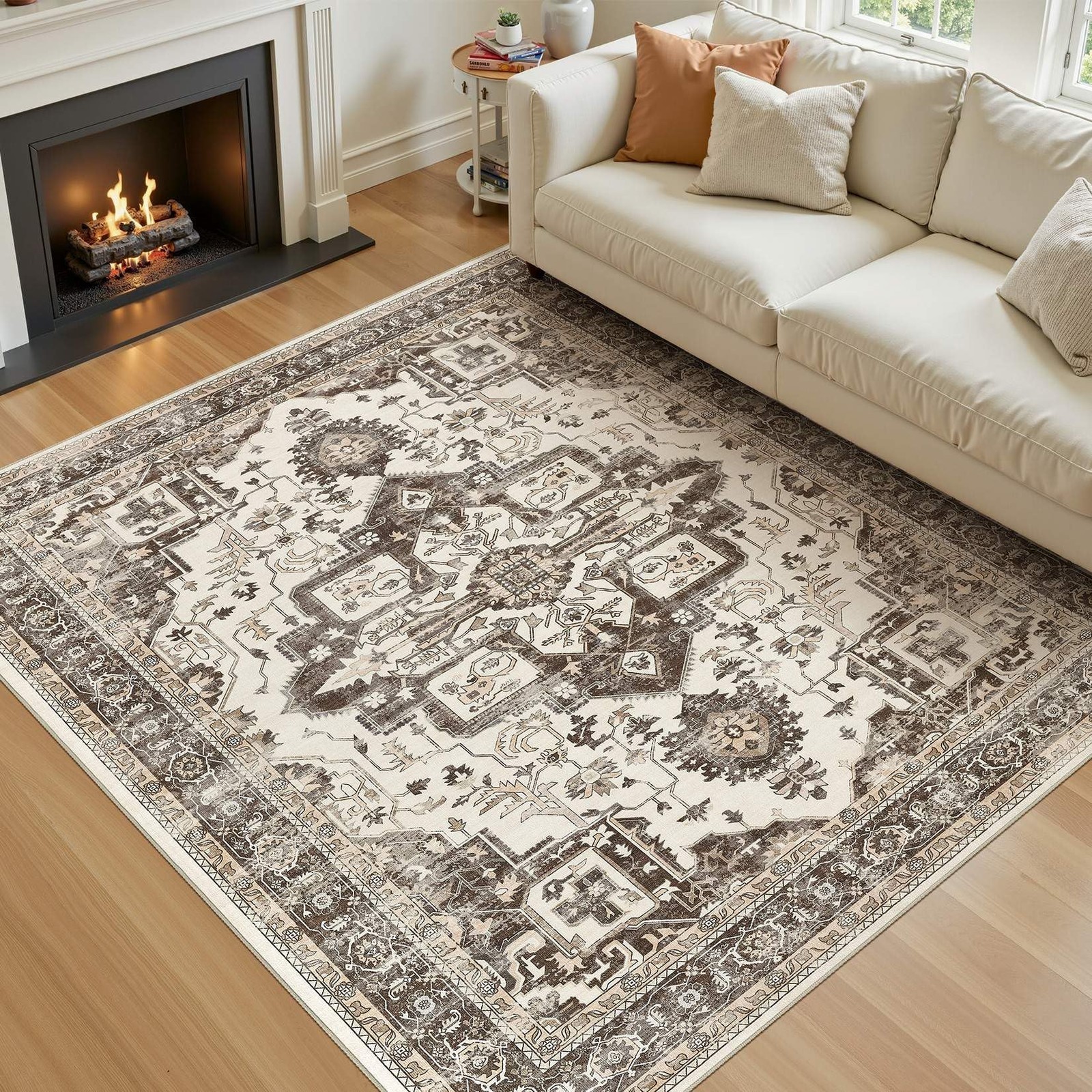 Washable 5x7 Area Rug for Living Room - Dark Brown 5' x 7' Rectangular