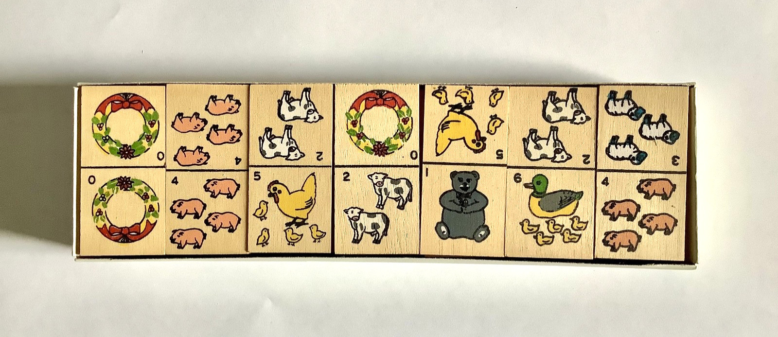 как выглядит FARM ANIMAL Dominoes Colorful Wood VTG Friendly Home Parties 28 Dominoes wBox фото