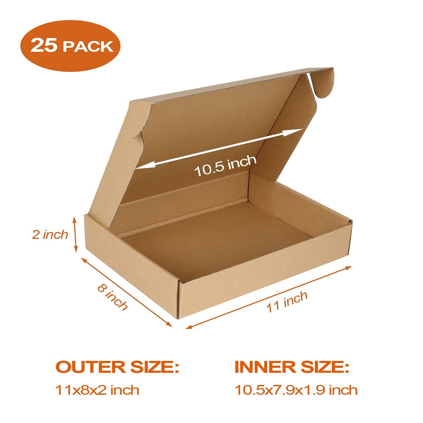 11x8x2 inch Shipping Boxes Bulk 25 Pack Brown Tab Lock Tuck Top Mailer Boxes