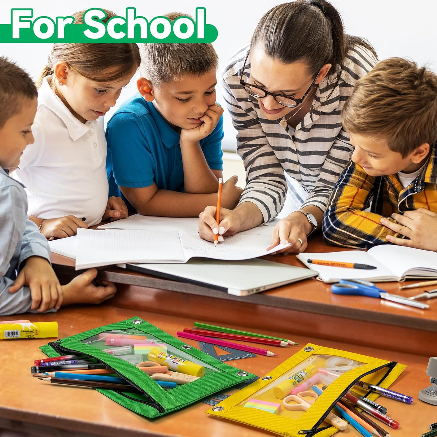 как выглядит Pencil Pouch for 3 Ring Binder, Bulk 6 Pack 3-Holes Zipper Pencil Pouches in Ass фото