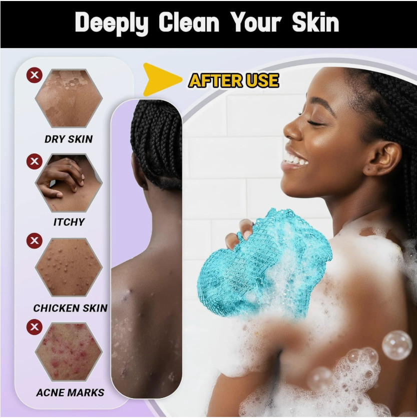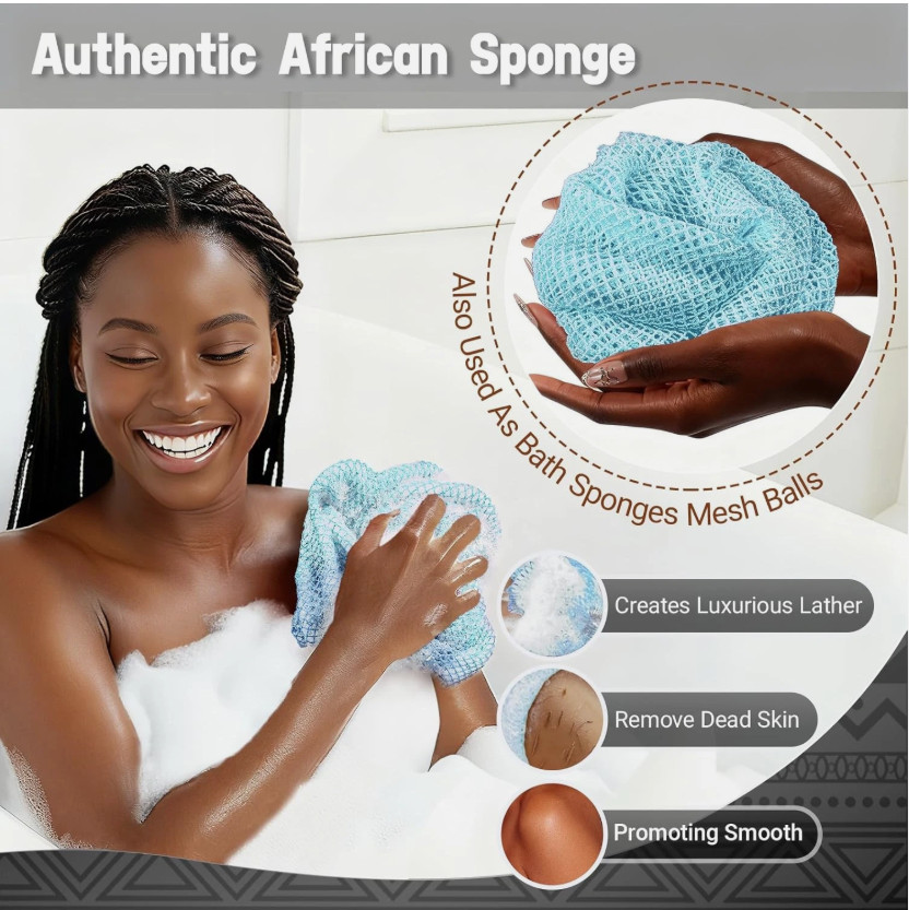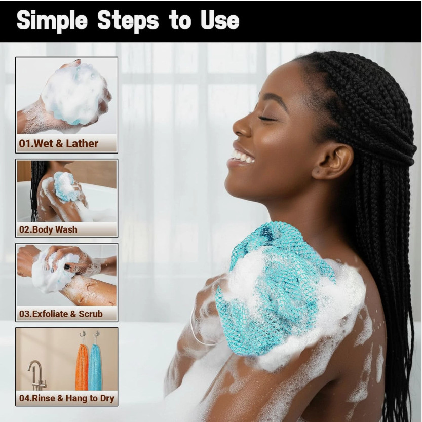 Authentic African Net Sponge Long Exfoliating Body Scrubber Spa Shower Mesh 2 Pc