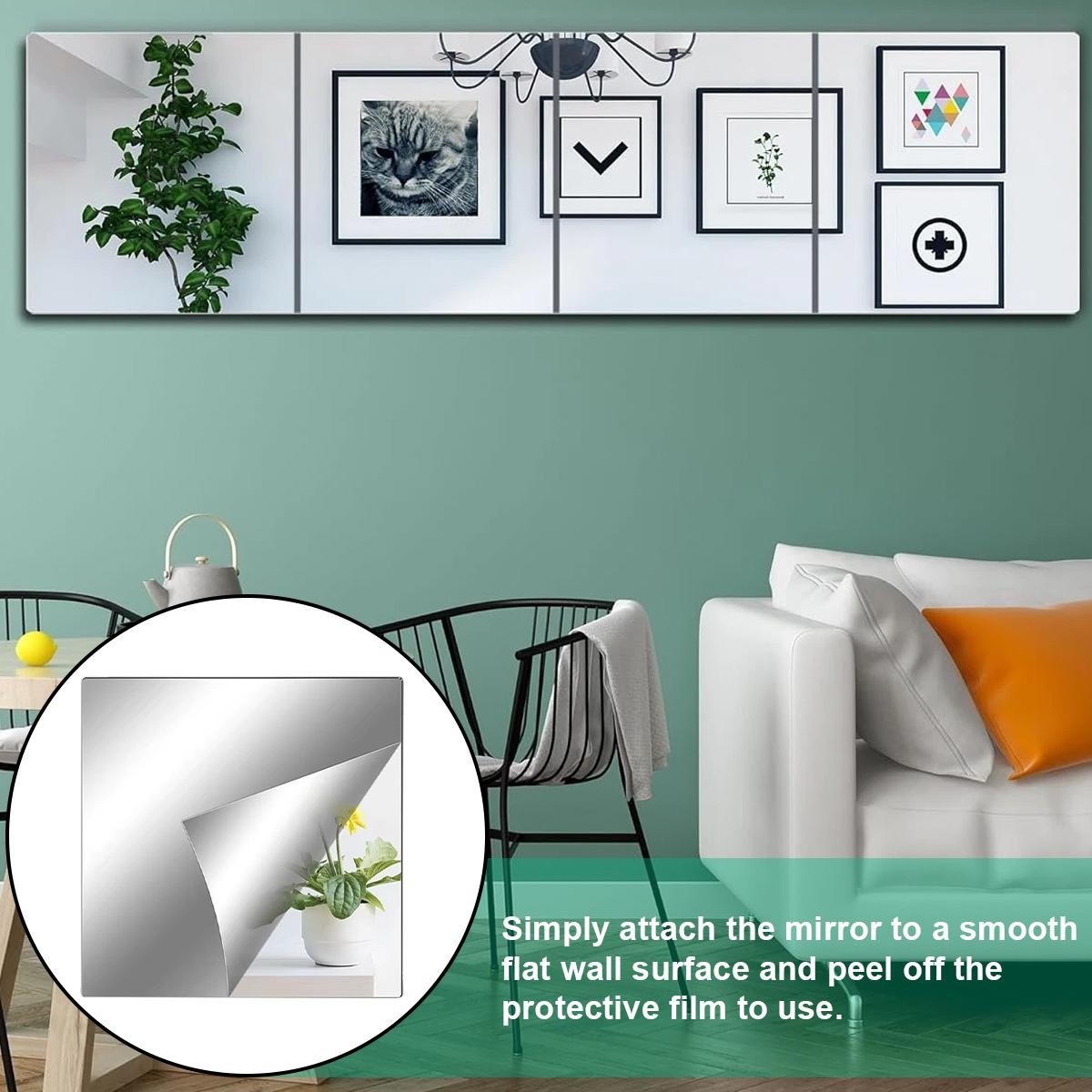 8pcs Acrylic Mirror Tile Wall Stickers Self Adhesive for Living Room