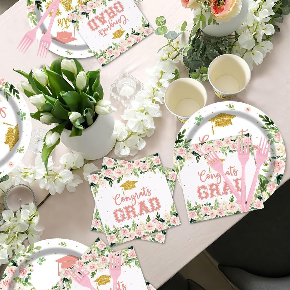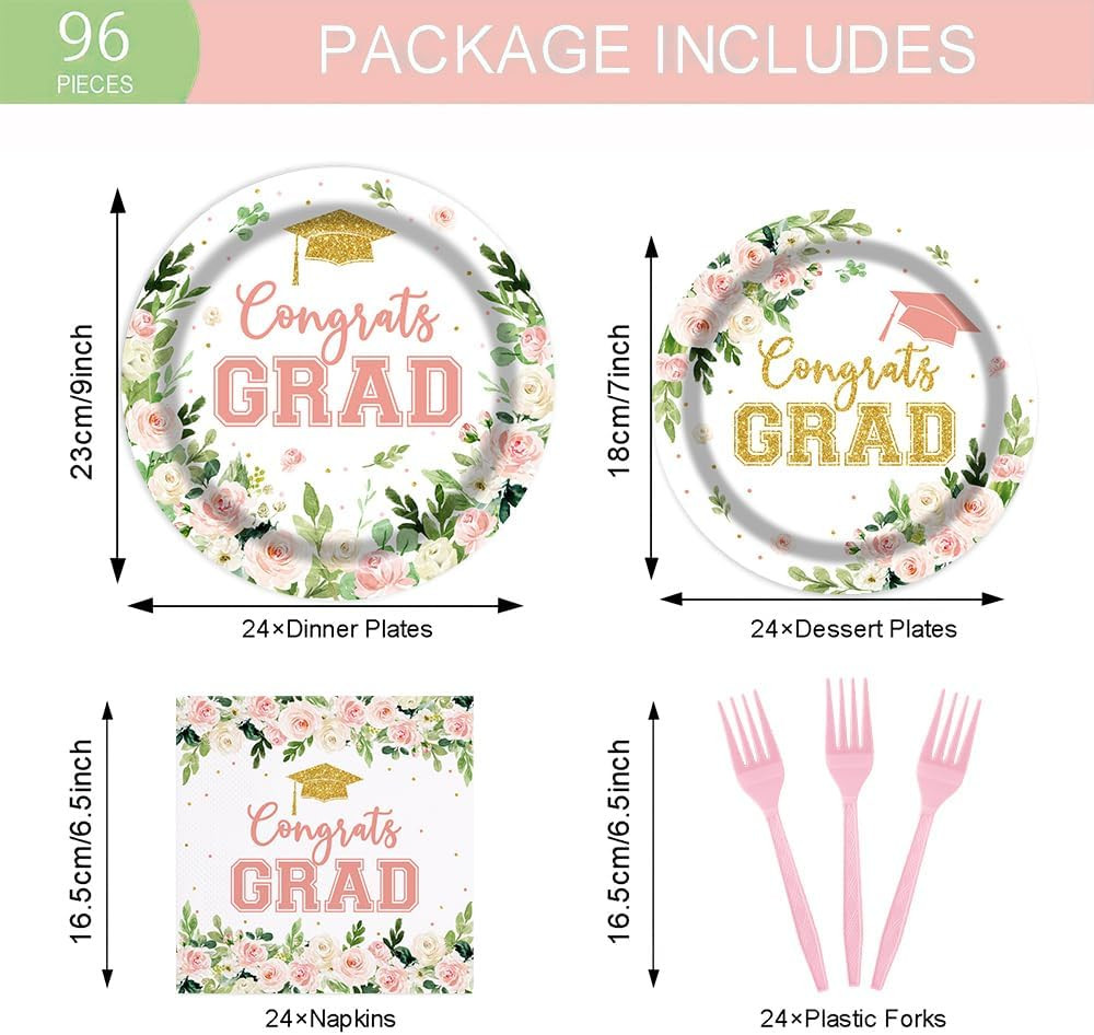 96Pcs Floral Graduation Party Tableware Supplies Congrats Grad Plates and Napkin