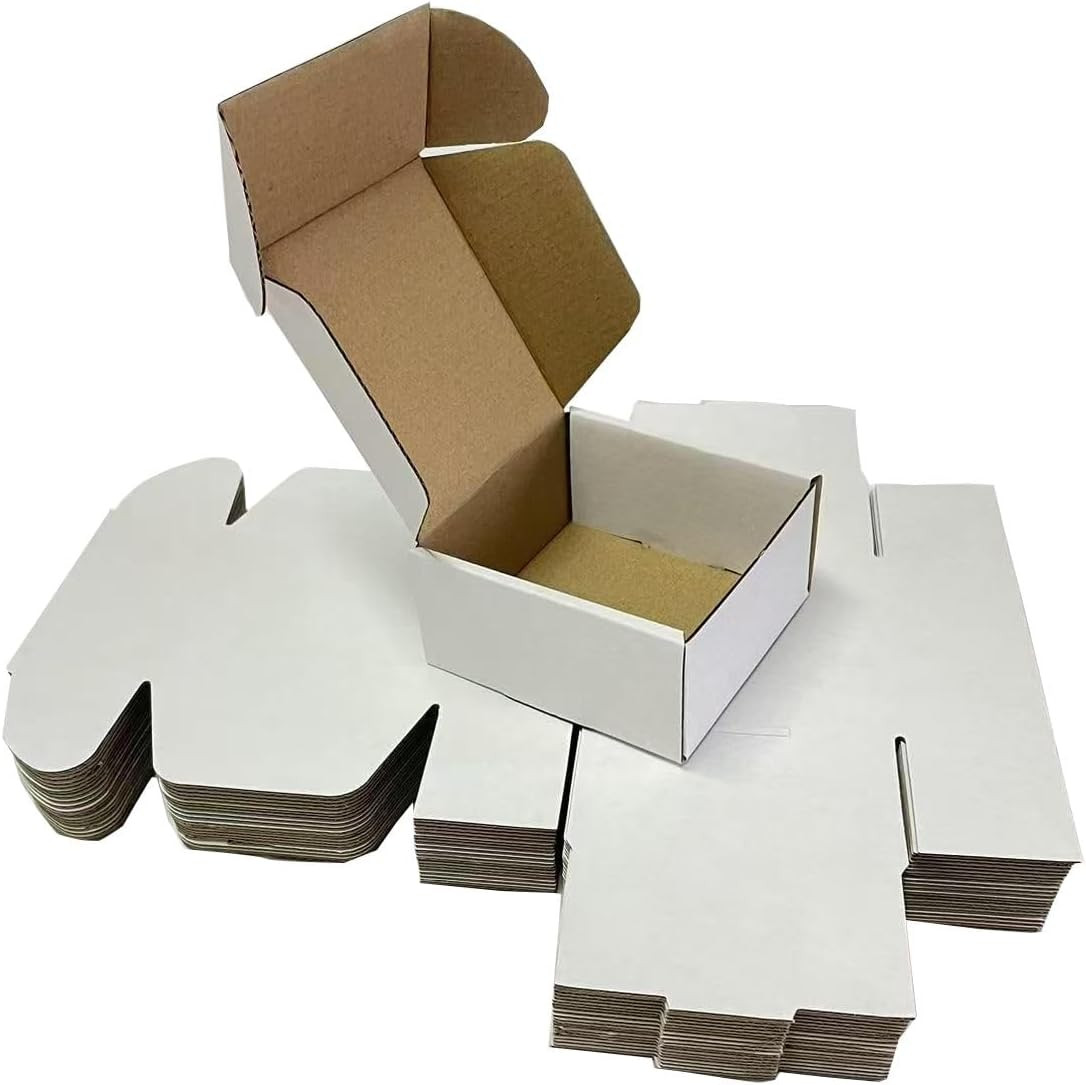 4X4X2 Shipping Boxes Set of 100, White Small Corrugated Cardboard Box, Mailer Bo