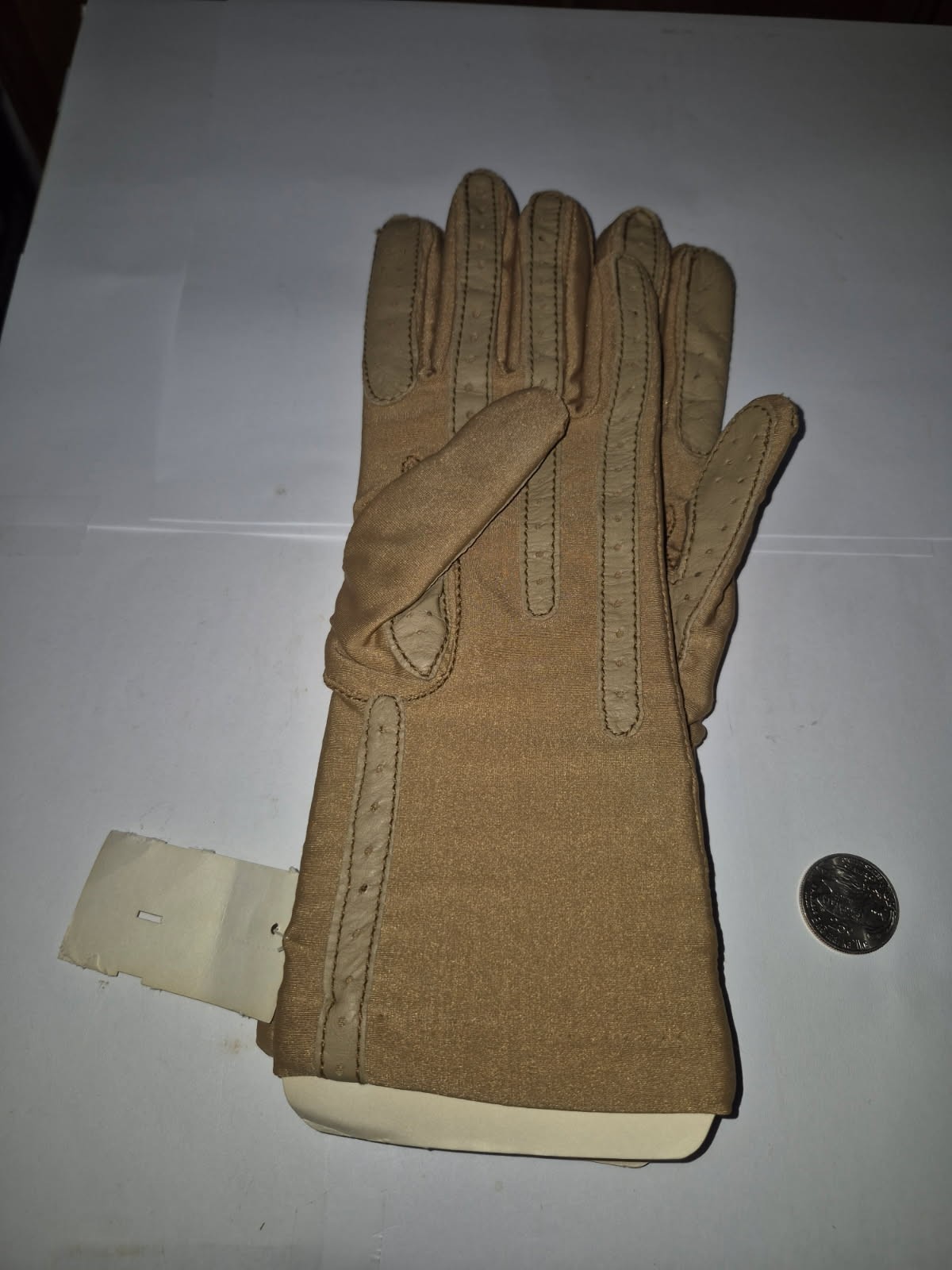 как выглядит Vintage Aris Isotoner Gloves One Size Stretch Camel Brown Antron Nylon OT18 фото